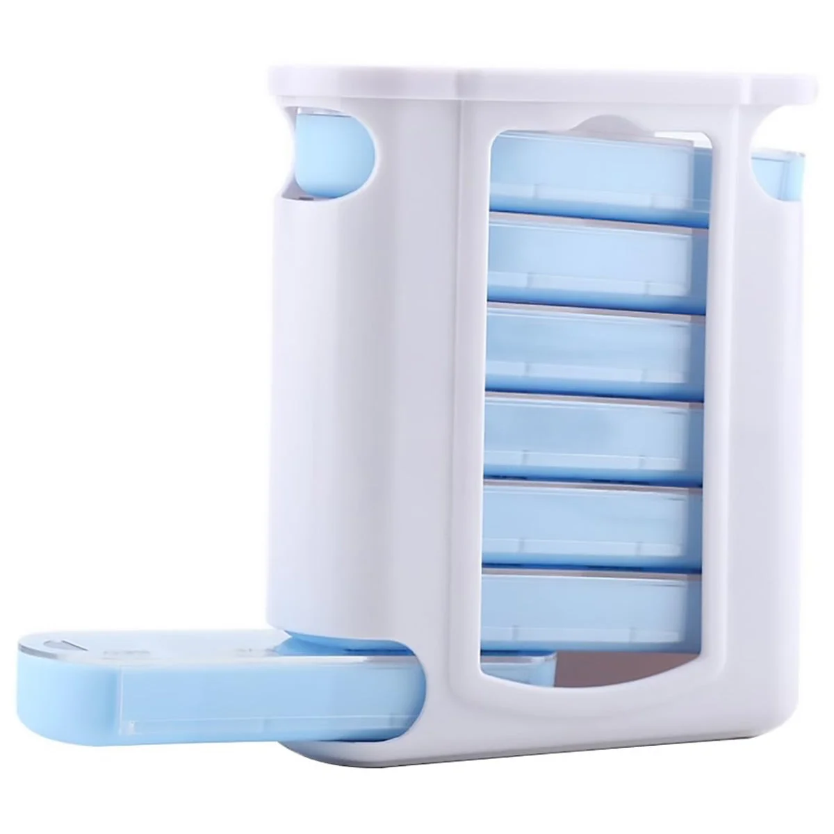 1 × 28-Compartment Weekly Pill Box (Blue + White)