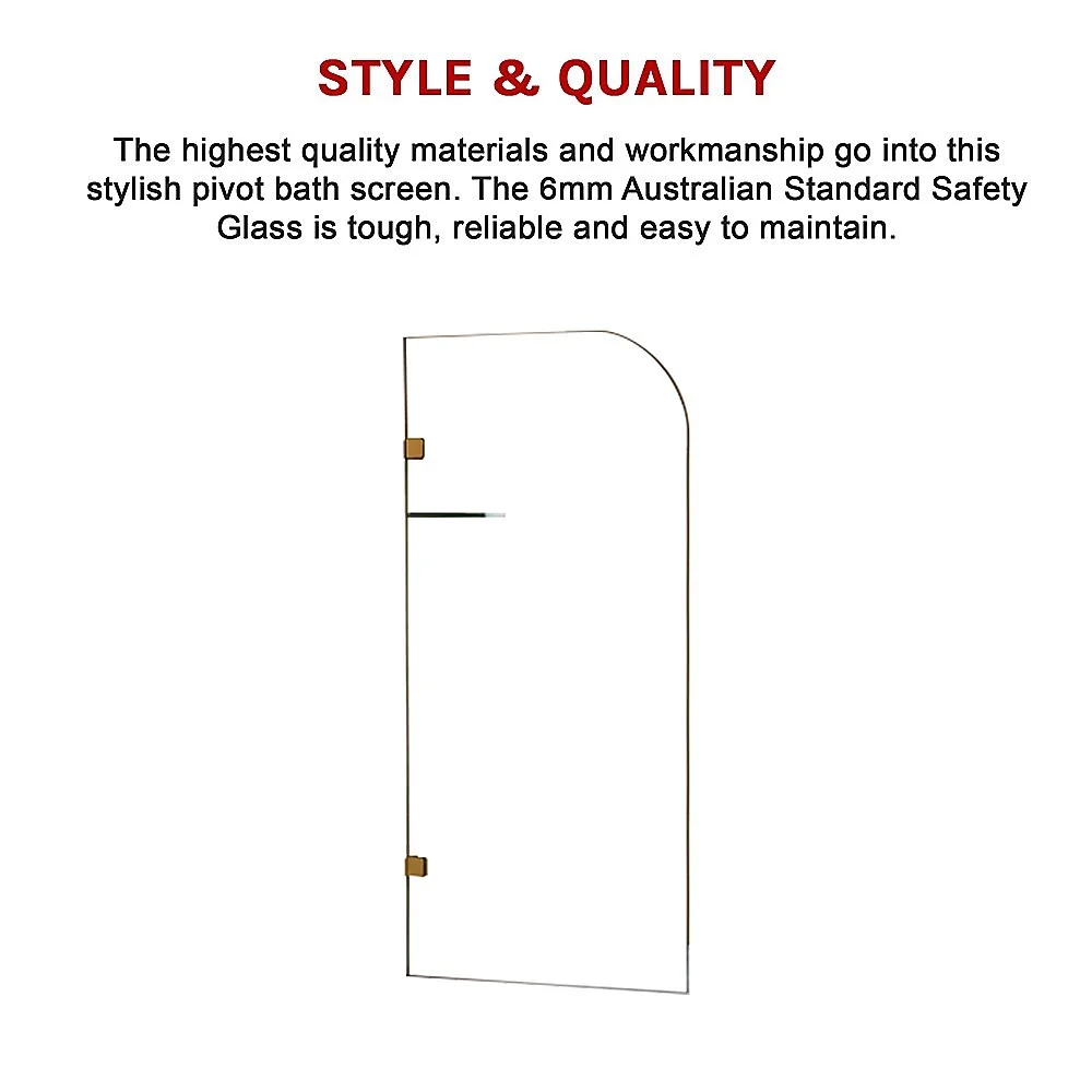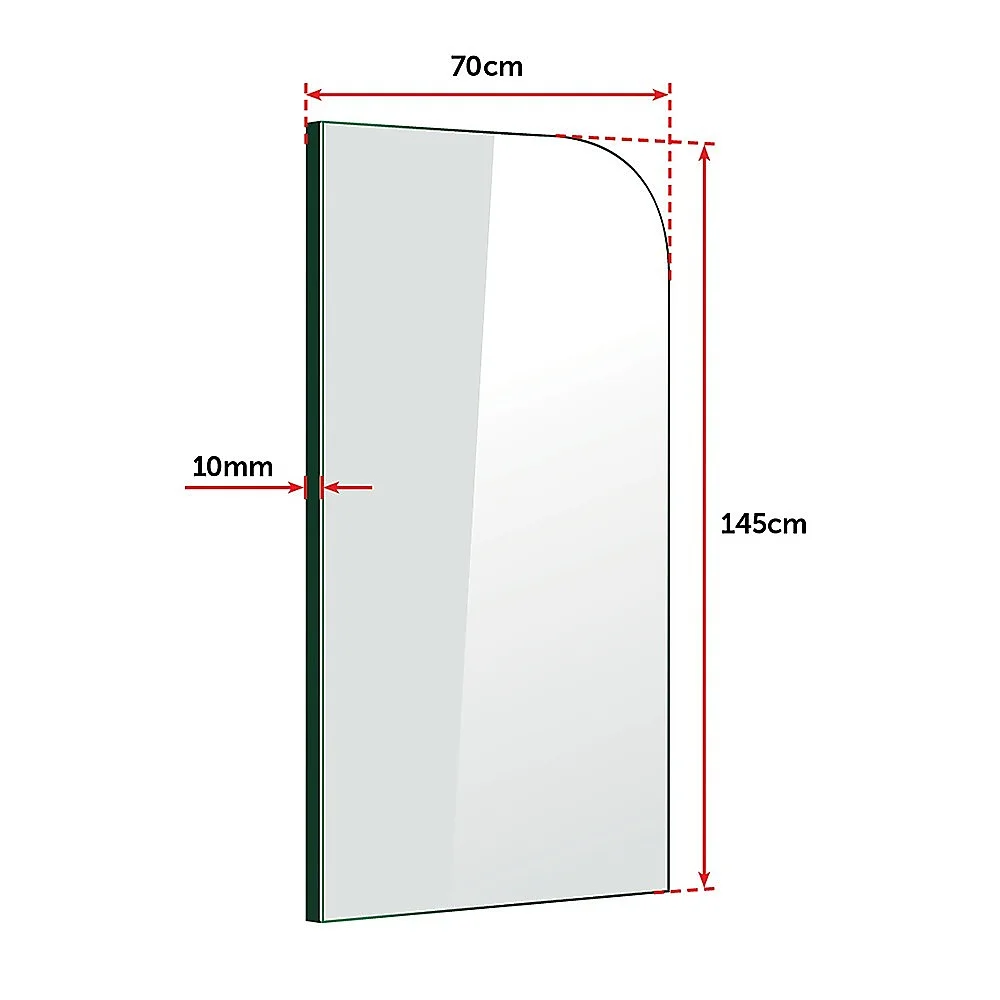 This gleaming shower door measures a generous 700 x 1450mm and features 10mm Australian standard tempered glass. The rounded-top panel is not only attractive, it is safe to use for all members of the family. The sturdy hardware on this shower door ensures safety and dependability. The elegant patch hardware add to the panels aesthetic appeal.