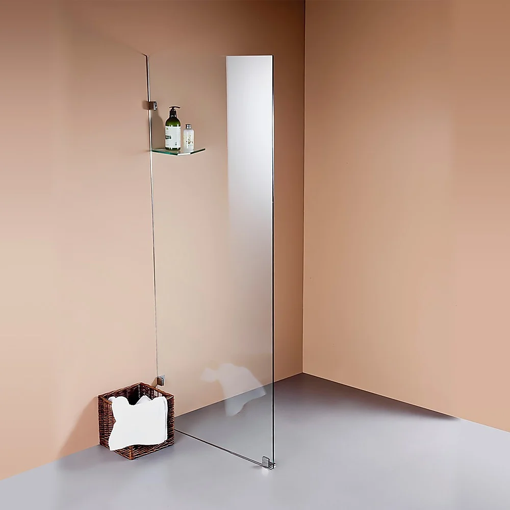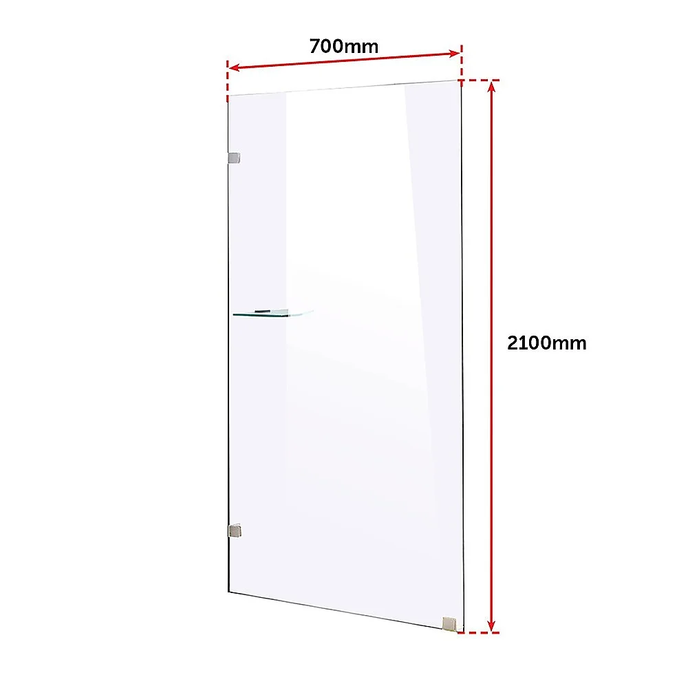 This single-panel screen is crafted from a 10mm-thick toughened safety glass. In addition to its crystal clarity, this glass is specifically designed to ensure absolute safety in the bathroom, meeting all applicable Australian Standards. Three sturdy and premium brass clips one for the floor, two for the wall are included for a straightforward, hassle-free installation. This panel measures 700mm wide by 2100mm high.