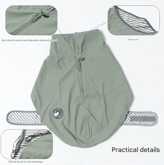 Our Waterproof Reflective Dog Raincoat is the perfect companion for your dog's outdoor adventures, no matter the weather. The lightweight yet sturdy design ensures your pet can move freely without restriction, while the waterproof exterior shields them from rain and mud. The adjustable straps provide a tailored fit, making it suitable for small breeds like Chihuahuas and larger breeds like Labradors. A foldable hood offers additional coverage for the neck and head, and the reflective accents enhance visibility in low-light conditions. Whether you're hiking, walking, or exploring, this raincoat keeps your dog dry, clean, and stylish.