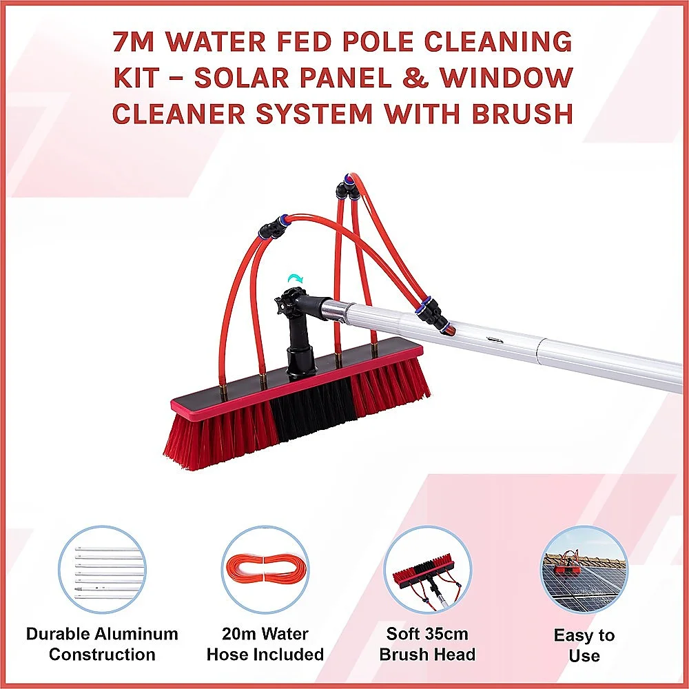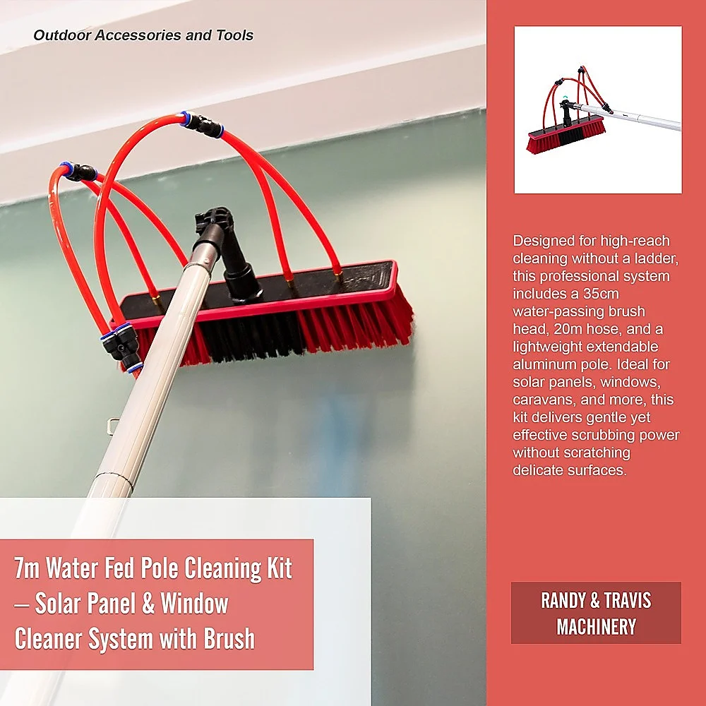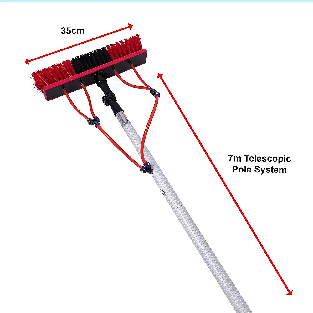 Tackle hard-to-reach cleaning tasks safely and efficiently with this 7m Water Fed Pole Solar Panel Window Cleaning Kit. Designed for high-reach cleaning without a ladder, this professional system includes a 35cm water-passing brush head, 20m hose, and a lightweight extendable aluminum pole. Ideal for solar panels, windows, caravans, and more, this kit delivers gentle yet effective scrubbing power without scratching delicate surfaces.