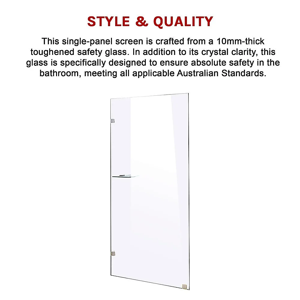 This single-panel screen is crafted from a 10mm-thick toughened safety glass. In addition to its crystal clarity, this glass is specifically designed to ensure absolute safety in the bathroom, meeting all applicable Australian Standards. Three sturdy clips — one for the floor, two for the wall — are included for a straightforward, hassle-free installation. This panel measures 800mm wide by 2000mm high.