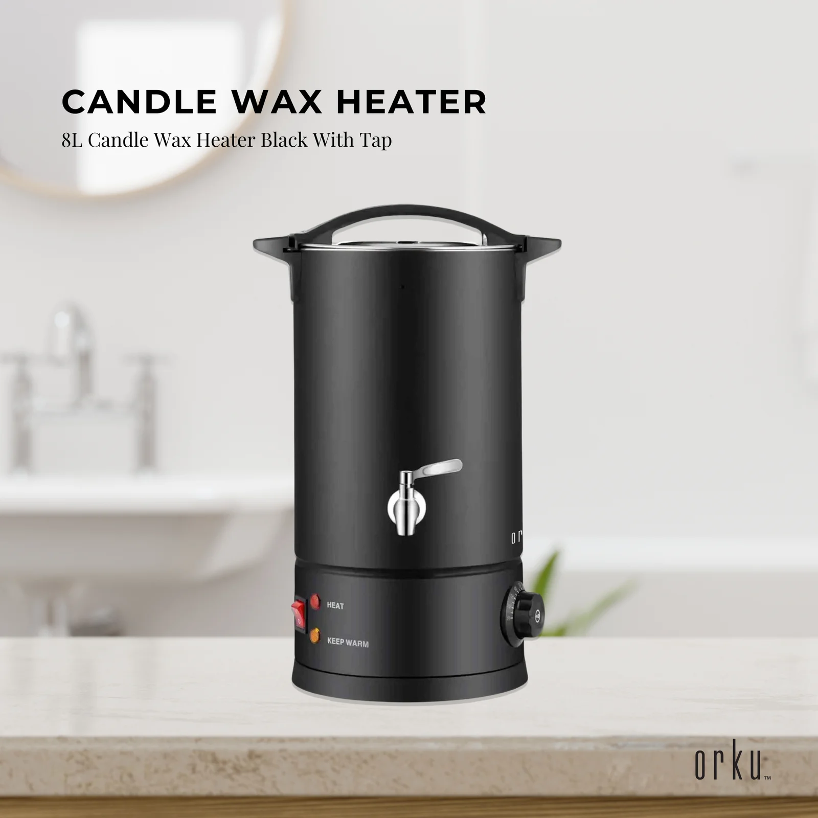This wax melting furnace is an ideal addition to your candle making operation. With an 8L capacity and adjustable temperature gauge from 30-100 degrees celsius, it can be used to melt all kinds of candle making waxes such as soy, paraffin, bees, hard, beads, and more.