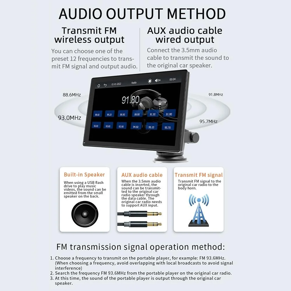 • Radio Transmission Frequency: 88.60/89.20/89.50/89.80/91.50/91.80/93/.00/93.60/93.90/94.50/95.10/95.70Mhz