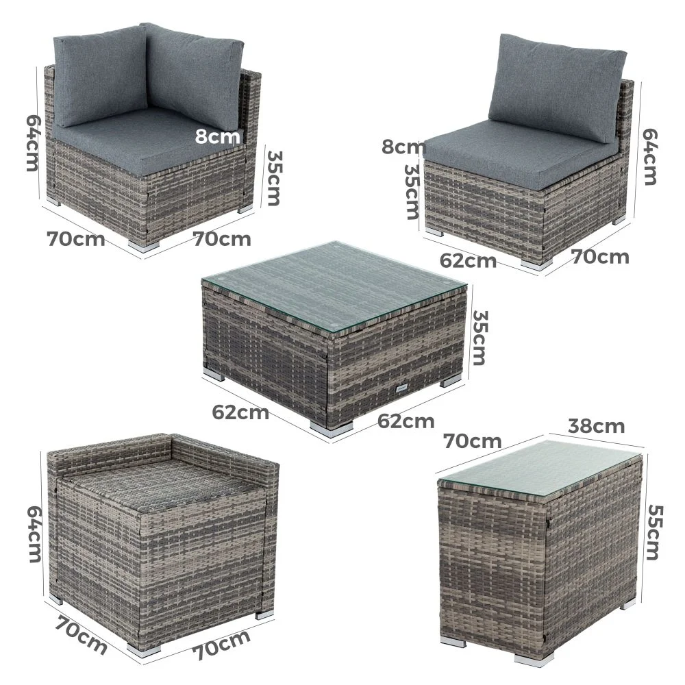 Gardeon 5-Piece Outdoor Sofa Set Wicker Couch Lounge Setting Cover