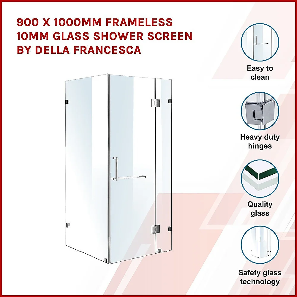 Della Francesca Frameless Shower Screens - Great Style for an affordable Price 900 x 1000 x 2000 Square Shape Finish