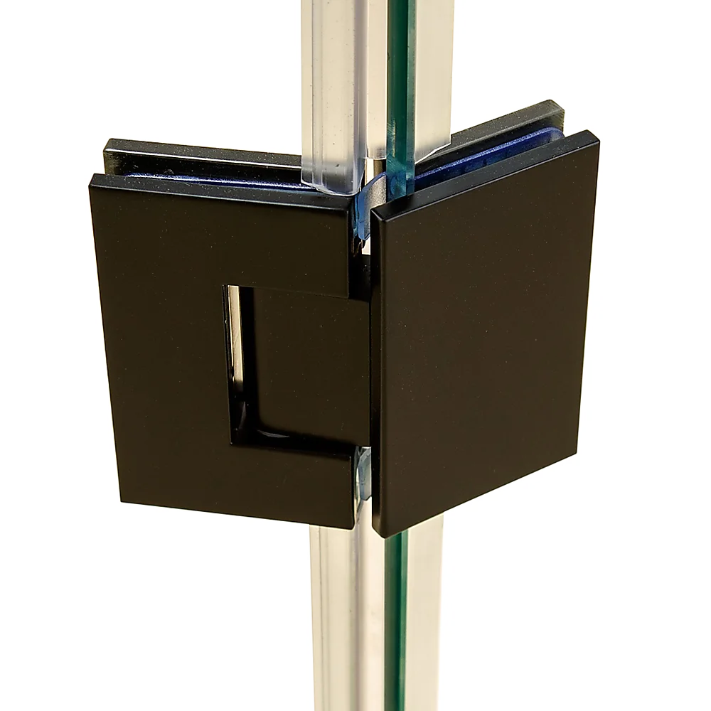 100x70cm Corner Frameless Shower Screen with Black Wall F-Brackets and SS Hinges, Square Double Pull Handle