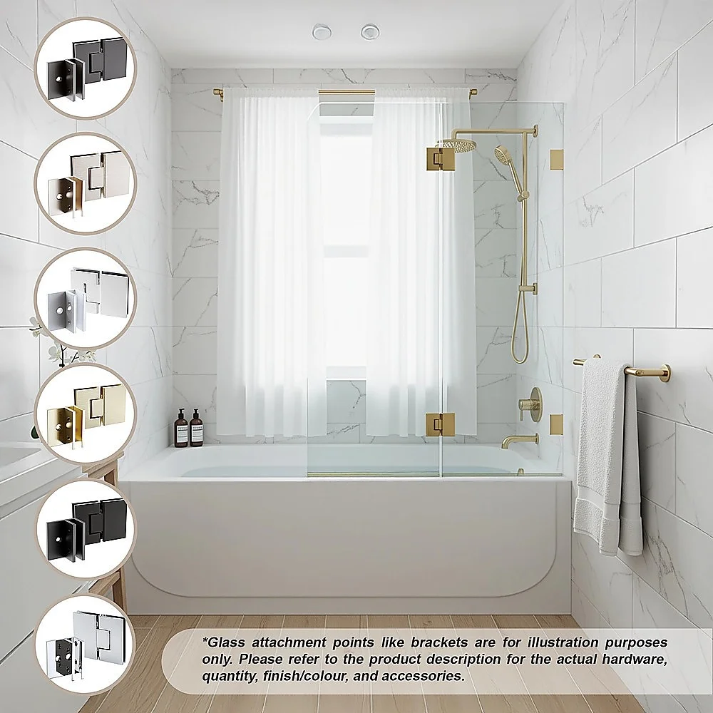 Enhance your bathroom with a Frameless Glass Bath Screen with Brass Brackets, designed for a sleek and modern look. This premium bath shower screen provides a stylish and practical solution to prevent water splashes while maintaining an open, spacious feel. The combination of durable glass and elegant brass fittings adds a touch of luxury to any bathroom.