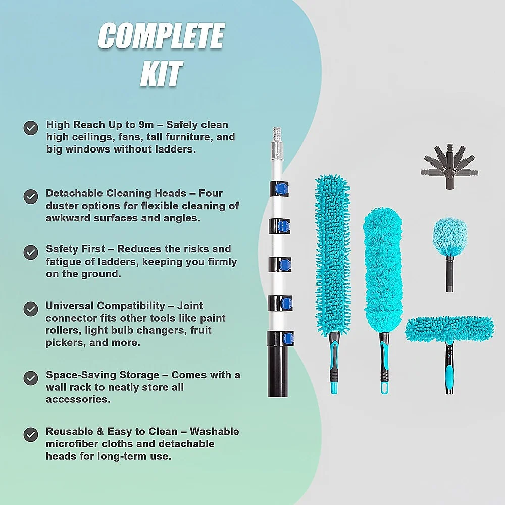 Durable, washable, and reusable, this duster kit offers a safer, more efficient solution for high-level cleaning both indoors and outdoors.