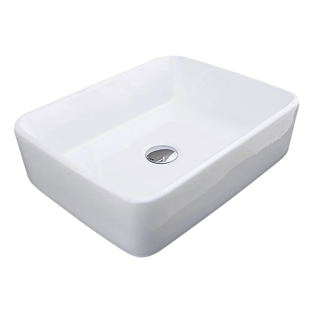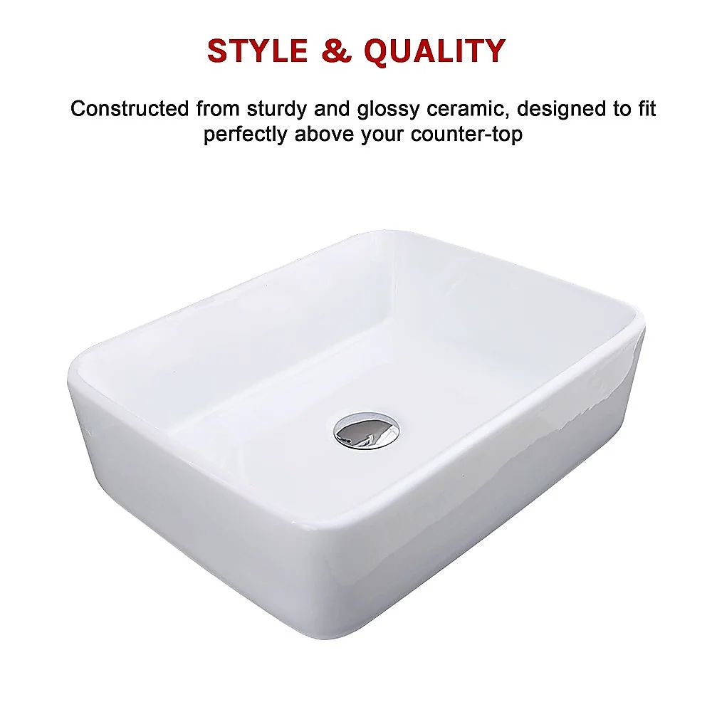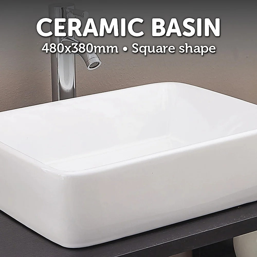 This attractive above-the counter basin bench-top basin is made from a ceramic construction. The basin is square in shape and measures 480 x 380 x 130mm.