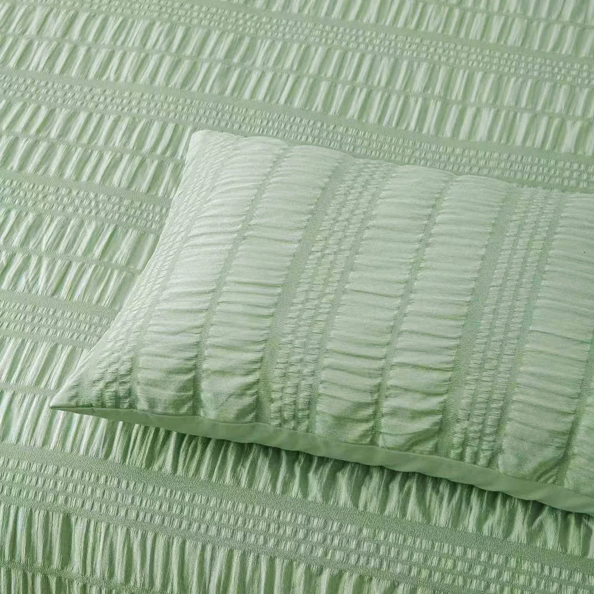 Crisp Sage bed linen has a beautiful update with this Seersucker texture. Ruched across the Quilt Cover and Pillowcase, this Seersucker Set gives the classic look of Sage while the texture ensures your bedroom looks anything but basic. The Accessorize Seersucker Sage Polyester Quilt Cover Set by creates visual interest and depth, ensuring your bedroom looks anything but basic while providing a comfortable and inviting atmosphere for restful nights.