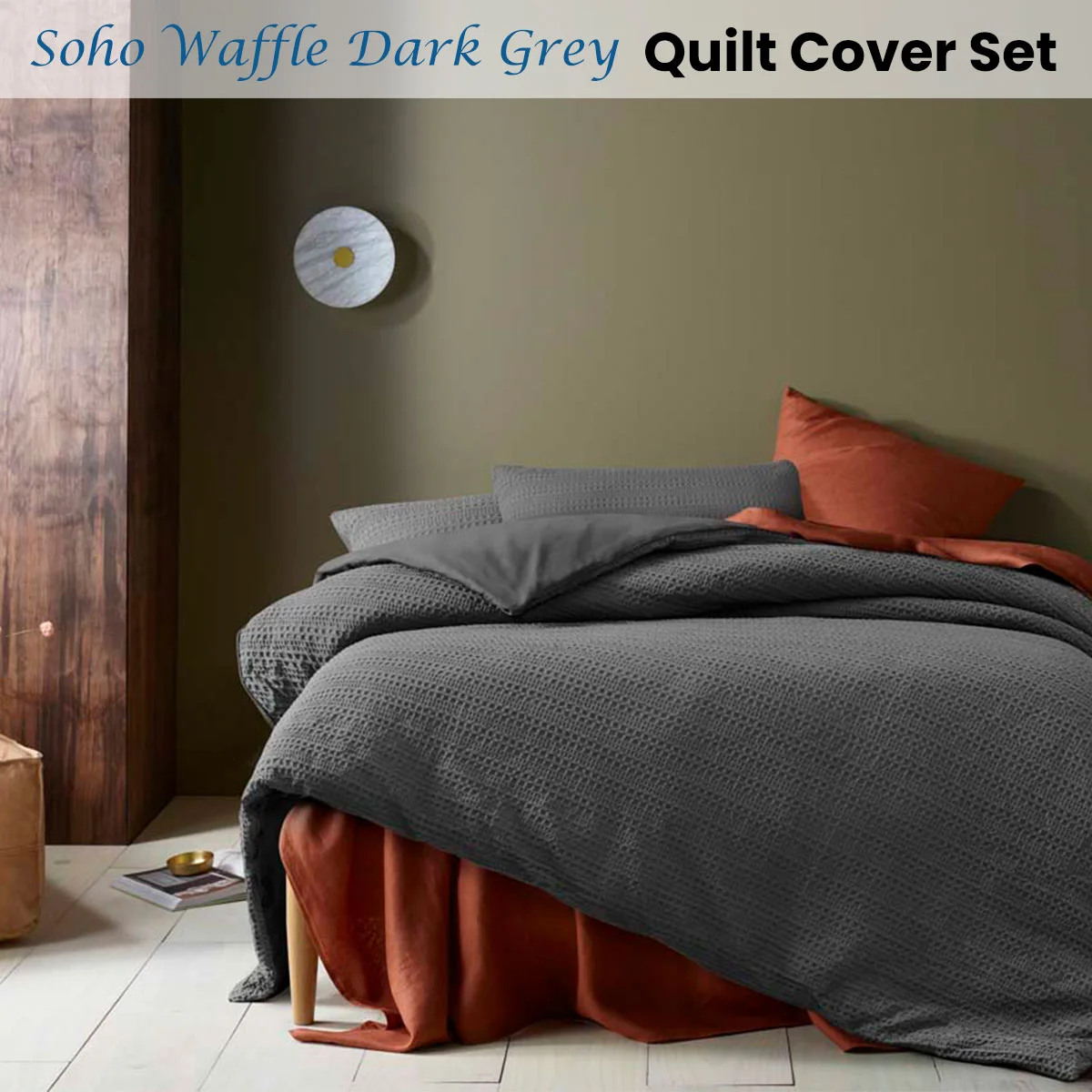 The Soho Waffle Dark Grey Quilt Cover Set by Accessorize features a unique textured surface, perfect for updating your bedroom. A detailed geometric design created using a three-dimensional weaving technique, the Soho Waffle set has a timeless appeal.