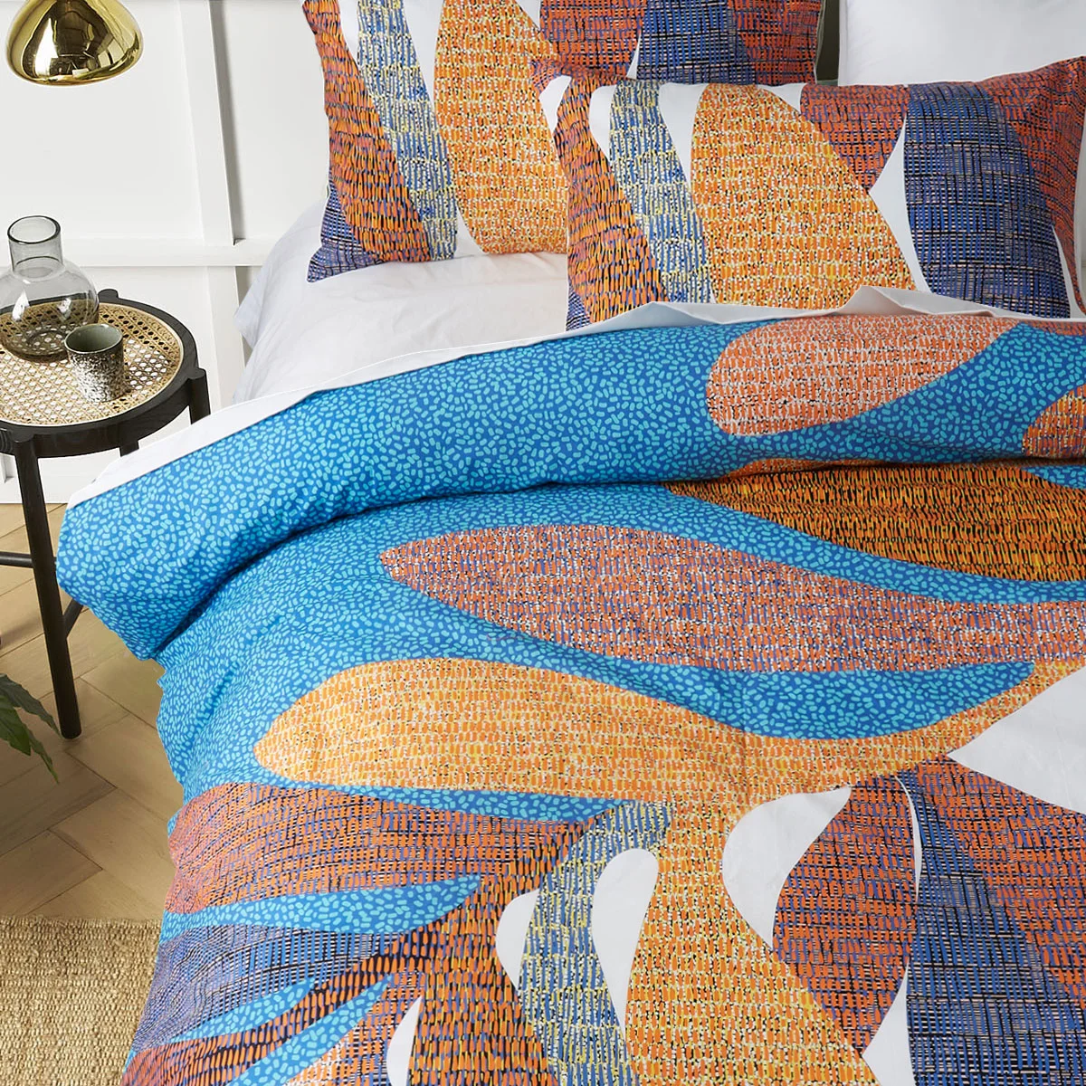 Bring a bold, artistic touch to your bedroom with the Sorrel White Cotton Foliage Quilt Cover Set by Accessorize. Featuring a striking leaf-inspired design in vibrant white, brown, black, blue, red, and purple tones, this set instantly brightens up your space. Made from soft, breathable cotton, it offers a cosy and comfortable night's sleep while keeping your decor fresh and modern. Whether you love a tropical vibe or a contemporary aesthetic, this quilt cover set is a stunning statement piece for any bedroom.