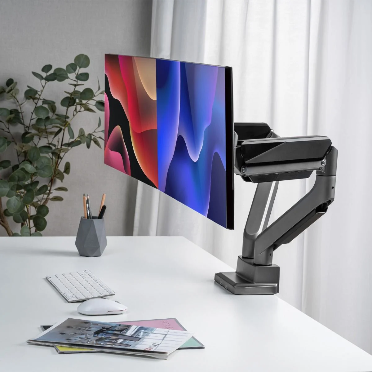 The monitor arm also comes with cable management, keeping your workspace neat and organised by ensuring that your cables are tucked away and not exposed, preventing accidents and tripping hazards.