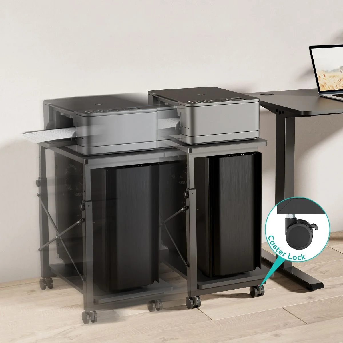 The activiva Height Adjustable PC Printer Storage Stand is a versatile solution designed to accommodate most PCs and printers. With 8-level height adjustment, ample storage space, smooth casters, and sturdy construction, it offers stability, durability, and convenience for organizing your workspace.