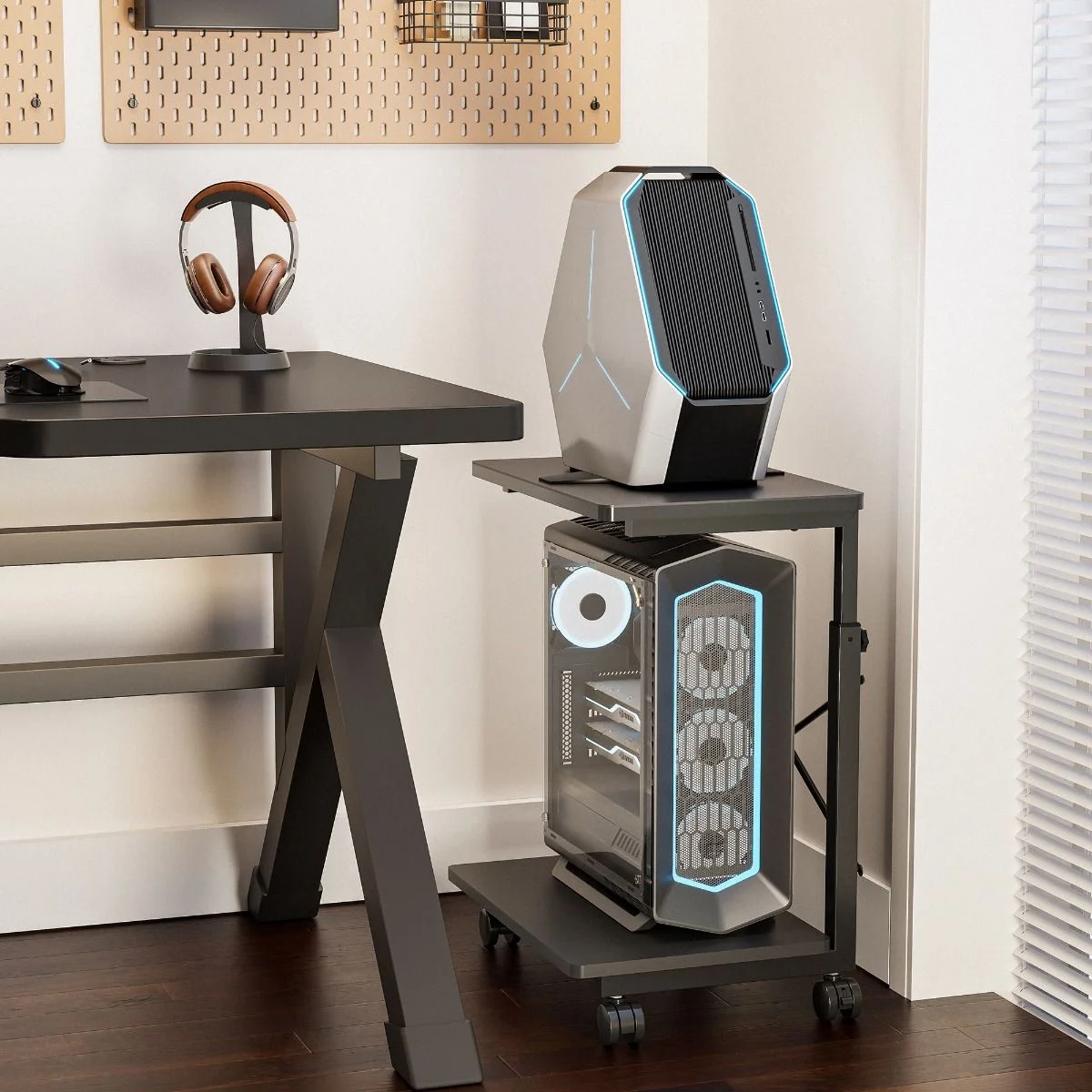 Sturdy Construction: Each shelf supports significant weight, guaranteeing stability and durability for large PC cases and other items.