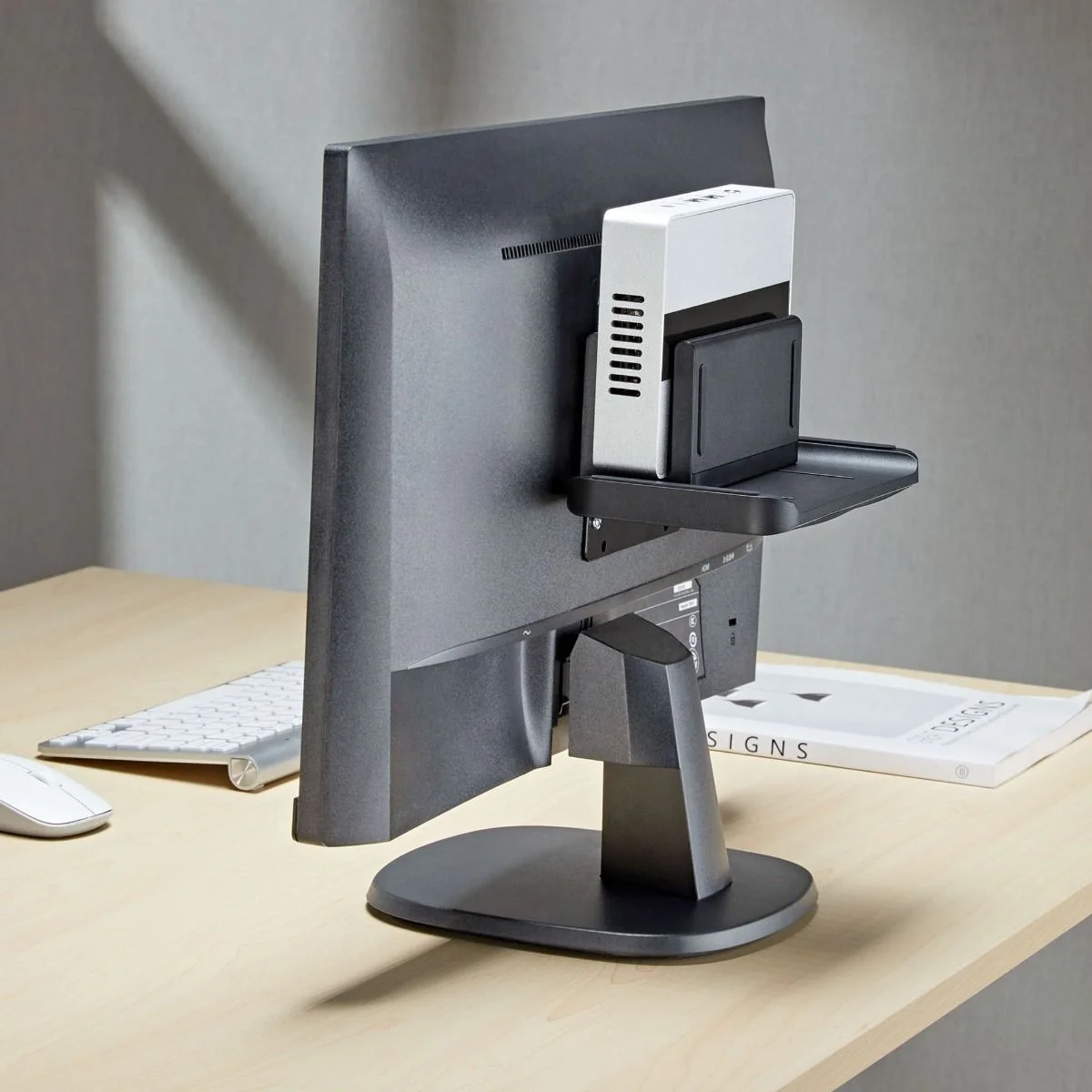 Discover activiva's Thin Client NUC Mini-PC mount stand, featuring adjustable width for different mini-PC thicknesses, strong support for devices up to 3KG, and non-slip silicone pad protection. With VESA or freestanding options, it streamlines workspace efficiency and offers easy access to your computing gear.