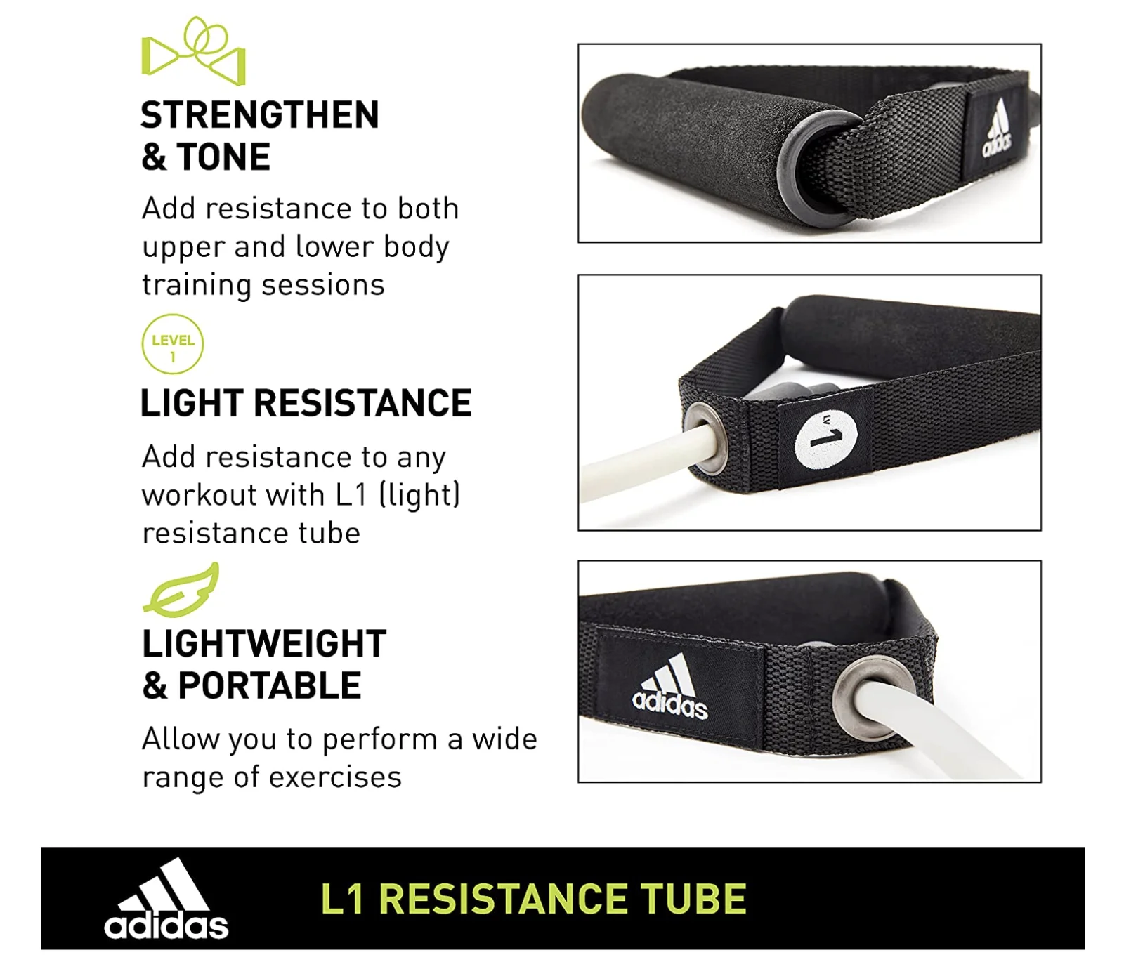 Featuring comfort grip handles, the adidas Resistance Tubes help strengthen and tone with targeted workouts. Fit for both upper and lower body training, the tubes allow you to perform a wide range of exercises regardless of your environment.