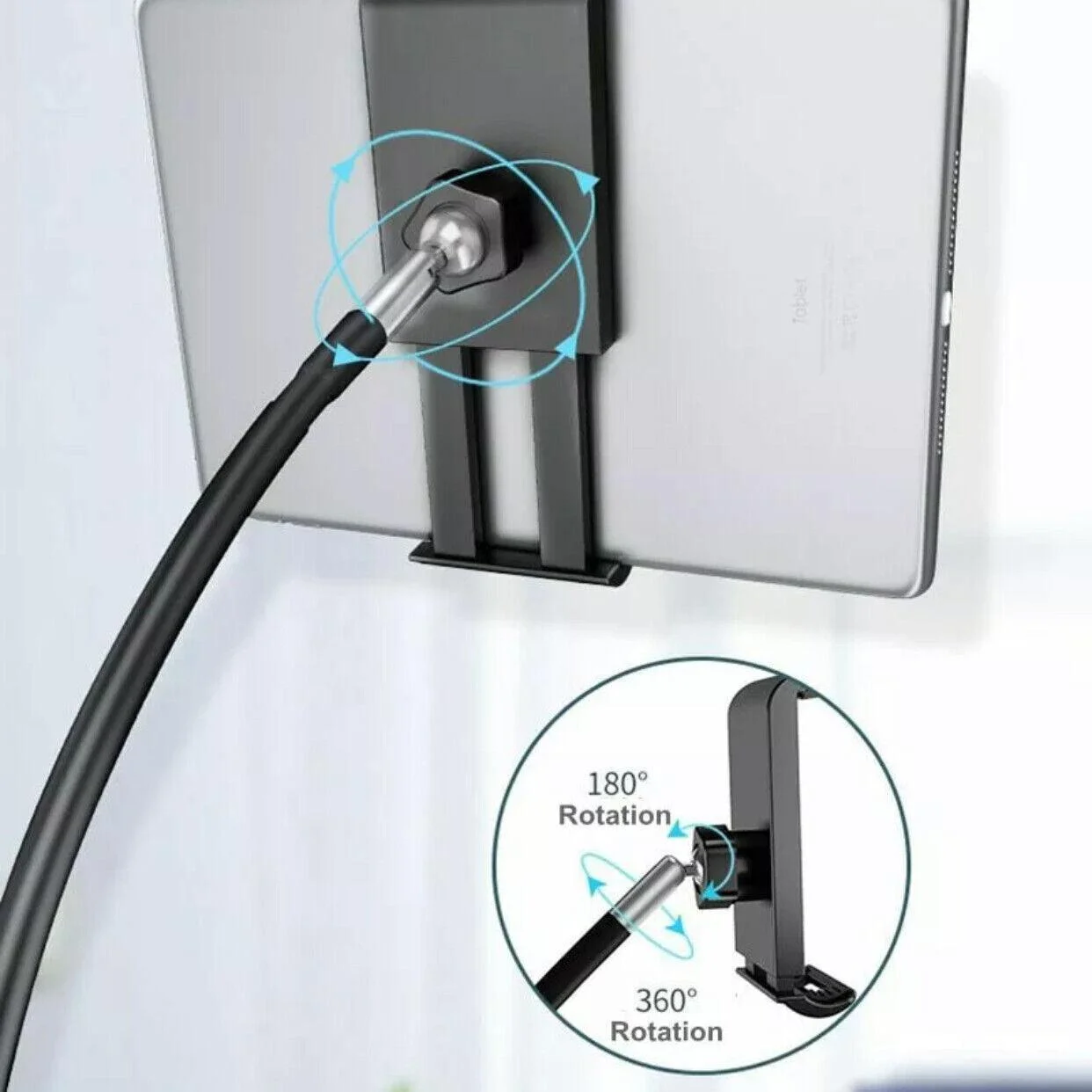 The flexible long gooseneck arm is designed to be versatile, but for it to effectively support the weight of any phone or tablet, it's important to coil or adjust it to ensure stability.