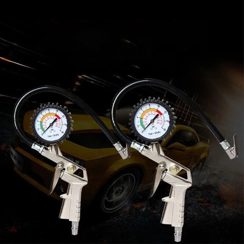 This type of tyre pressure gauge is accurate and convenient for measuring your car's tyre quickly, it will help to ensure that your vehicle's wheels are at their correct pressure ratings at all times. In addition, it also comes with an inflator gun, which will help you a lot when you want to inflate your car's tyre. Use on cars, trucks, SUV's, trailers, ATV's, motorcycles, bicycles and most other vehicles.