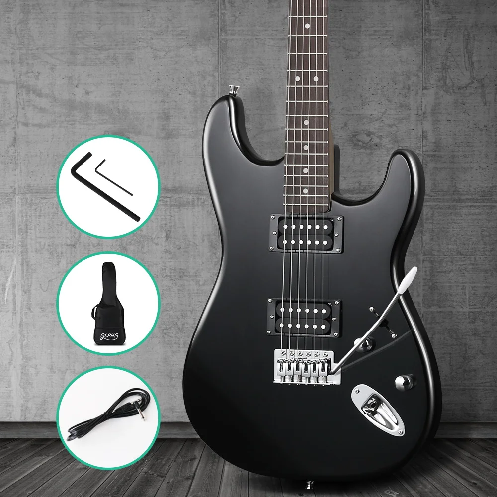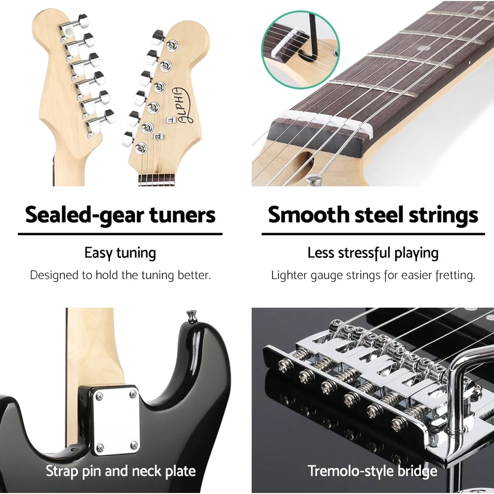 Often emulated for its classic shape and superb tones, the Stratocaster has been the definitive electric guitar for more than 60 years. And our Alpha Strat-style Electirc Guitar aims to help you fulfill your passion of playing this iconic legend at a very affordable price. Great for beginners, the Alpha Strat-style Electric Guitar comprises a comfortable and glossy Poplar body with a hign quality neck and fretboard. The neck is smooth and the 22 frets are designed to enable you to play with ease. Not least, the 3-way pickup switch allows you to select your favourite tones from the warm timbre of the humbucker pickups. In short, this versatile guitar will suit any genre of music, from rock, pop, blues, to funk, country and more. Also included with the electric guitar is a snazzy whammy bar for the tremolo bridge, cable and guitar bag. So rock on with the Alpha Strat-style Electric Guitar for heaps of awesome coolness. Get yours today.