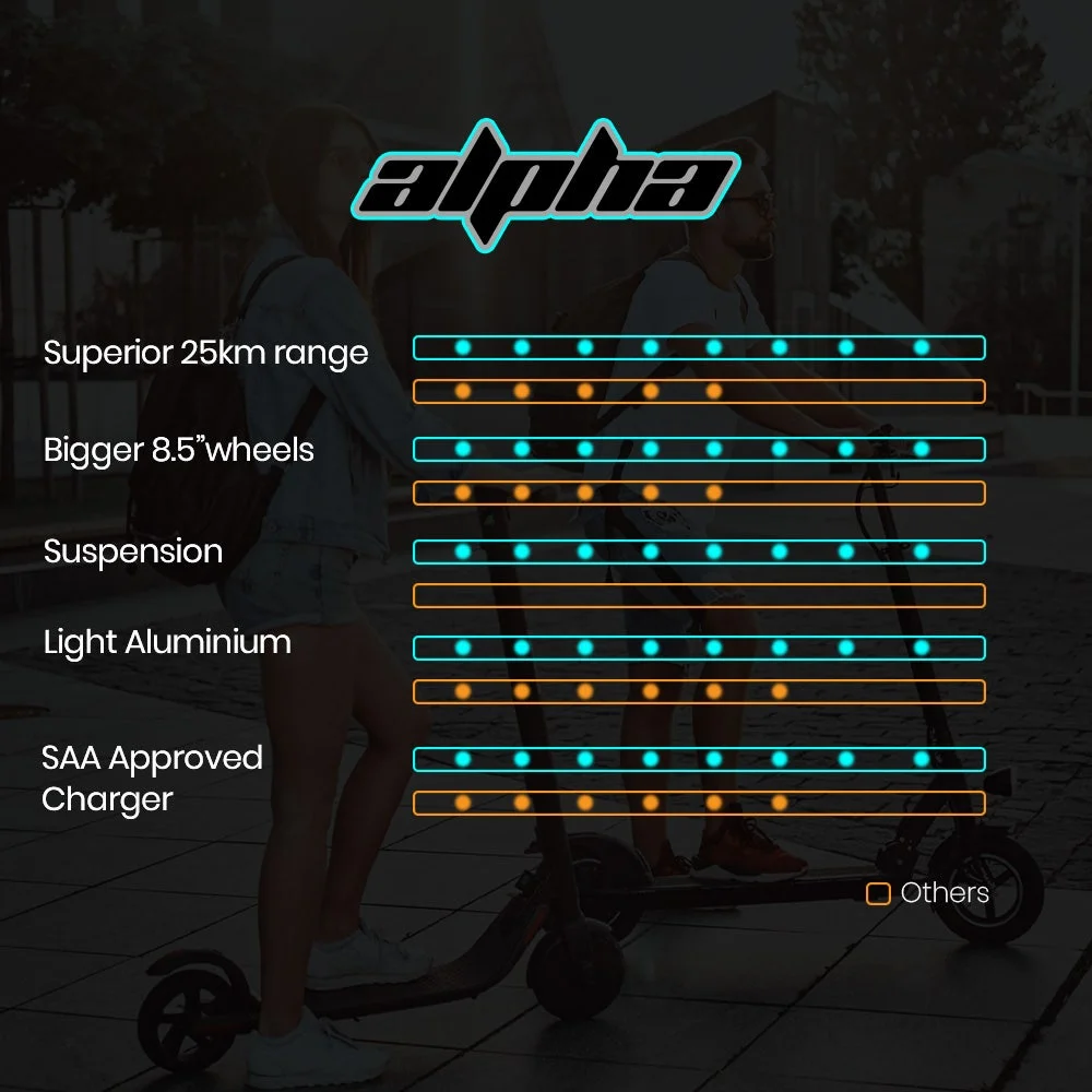 Discover the ALPHA Urban electric scooter - your perfect blend of advanced technology and superior design, crafted from high-quality materials. This high quality aluminium scooter delivers top-notch performance with unmatched structural strength.