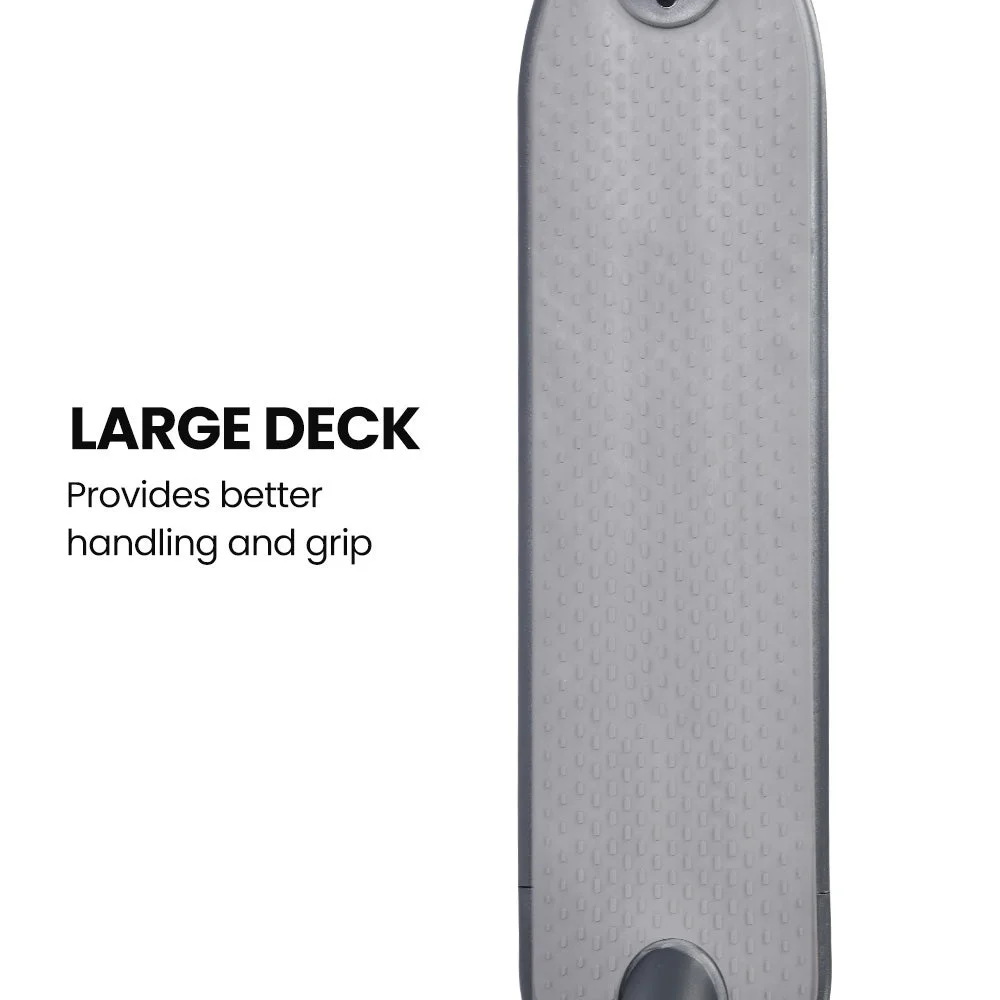 The scooter's design is ideal for adults and teens alike, featuring a long deck for enhanced control. The 8.5-inch airless tyres work with the rear torsion plate to absorb shock and dampen vibration.