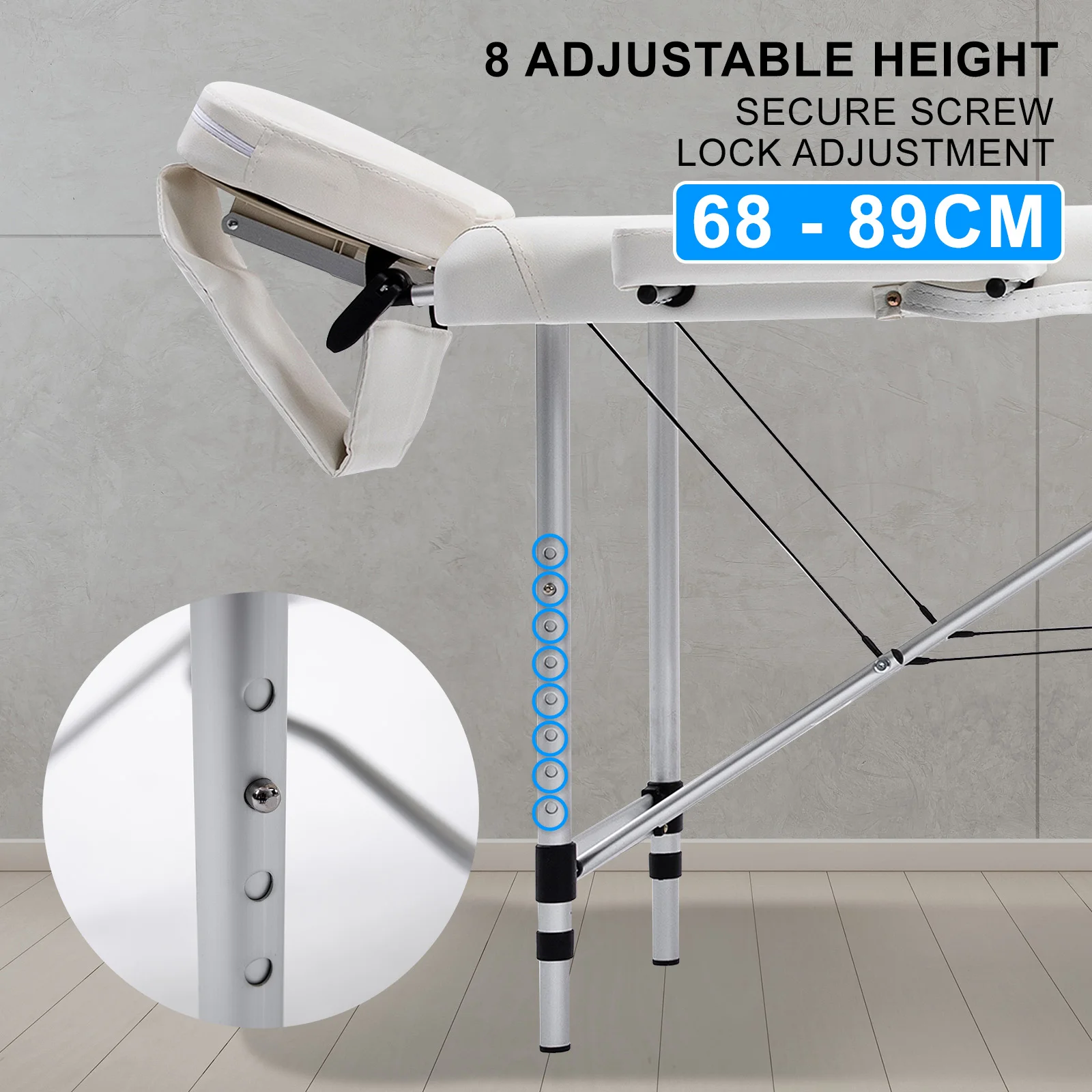 Forever Beauty Portable Beauty Massage Table Bed 2 Fold 55cm Aluminium Therapy Waxing - White