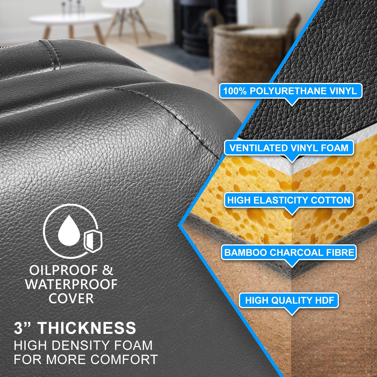 Upholstery: 100% Polyurethane vinyl