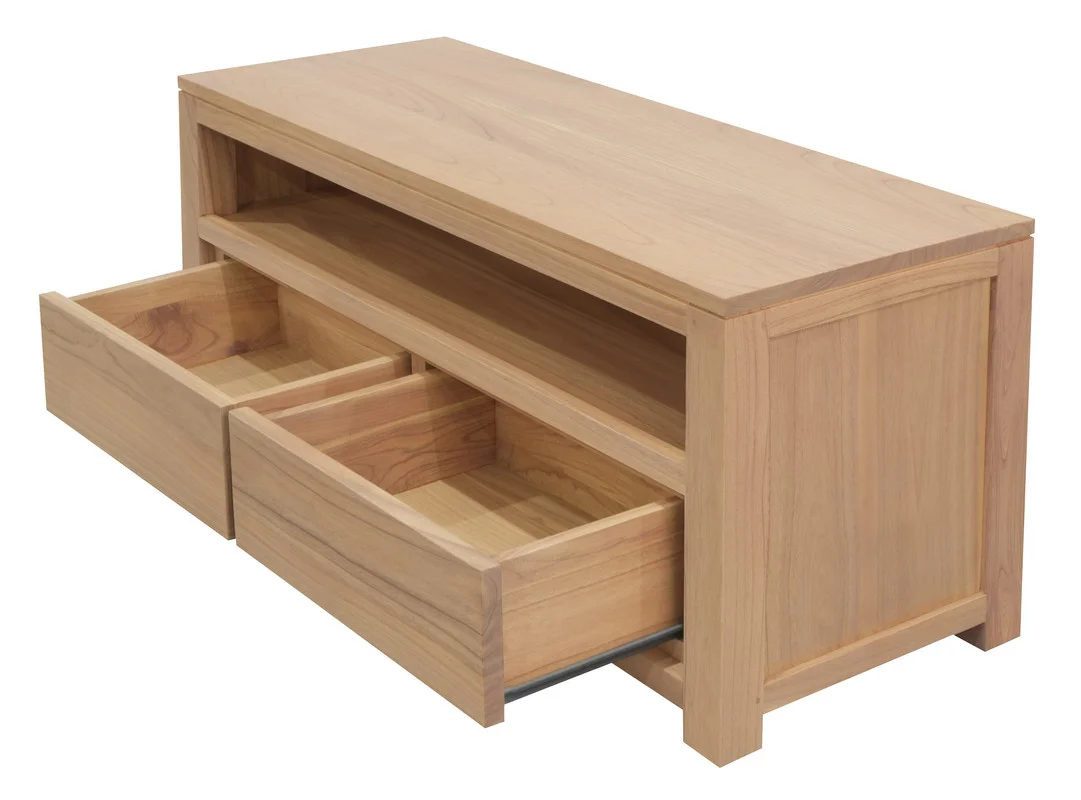 Crafted from solid Mindi timber and hand-finished in a soft Natural tone, the Amsterdam Entertainment Unit pairs clean lines with practical storage in a compact footprint. Its streamlined form suits interiors from modern-rustic to contemporary-coastal.