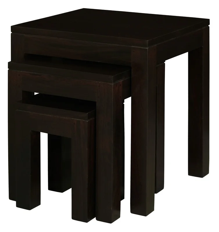 Discover the exquisite charm of the Amsterdam Nest of Table set, a perfect fusion of modern minimalism and timeless elegance. Expertly crafted from solid mahogany timber, this trio of nesting tables is designed to bring both functionality and sophistication to your living spaces.The Amsterdam Nest of Tables stands as a testament to the beauty of simplicity, with clean lines and a sleek silhouette that make a subtle yet impactful statement. The deep, rich tones of mahogany add a sense of warmth and luxury, while the sturdy construction ensures durability and long-lasting quality.With a combined weight of 13.5 kg, these tables are robust yet easy to move, allowing you to reconfigure your space as needed. Arriving fully assembled, the Amsterdam Nest of Tables are ready to enhance your homes décor immediately, offering both style and practicality.These tables are designed for indoor use, making them a versatile addition to your living room, bedroom, or any other space where elegance and functionality are desired. Their nesting design allows for compact storage when not in use, ensuring they are as practical as they are beautiful.