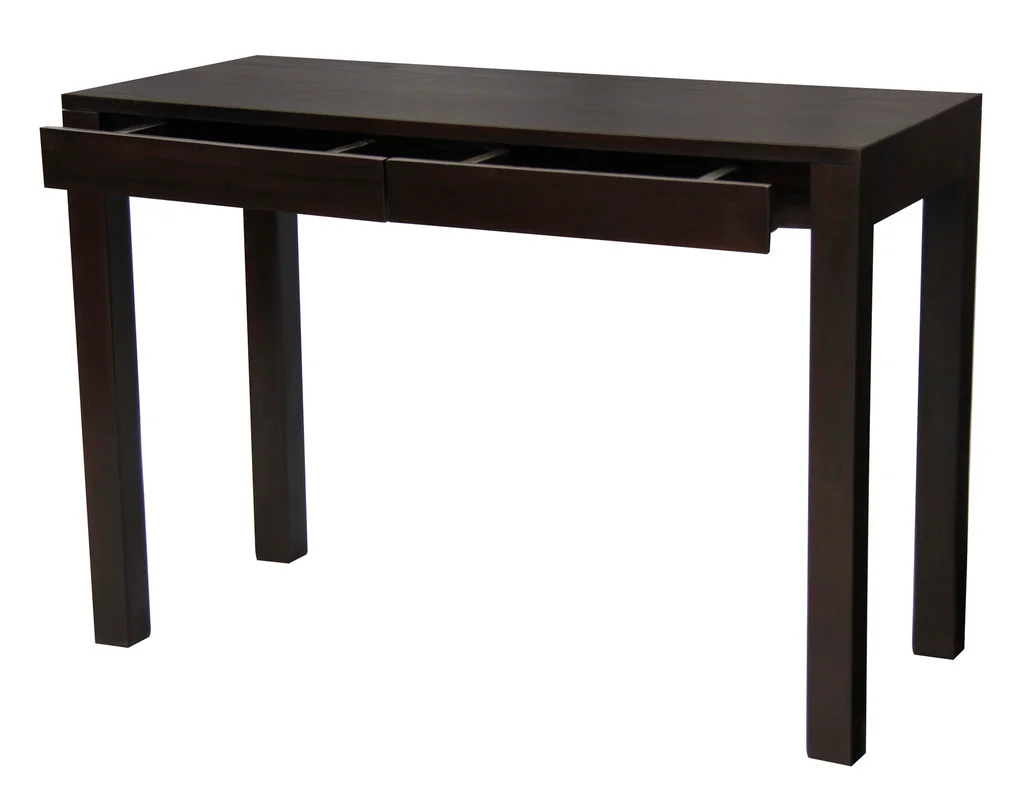 The Amsterdam 2-Drawer Desk pairs streamlined modern lines with the natural warmth of solid mahogany. A compact footprint and clean, squared edges suit contemporary homes and workspaces, while two discreet drawers keep everyday essentials close and the worksurface clear. Hand-finished timber highlights the grain and brings lasting character to the piece. Available finishes: Chocolate, Light Pecan, and Mahogany.