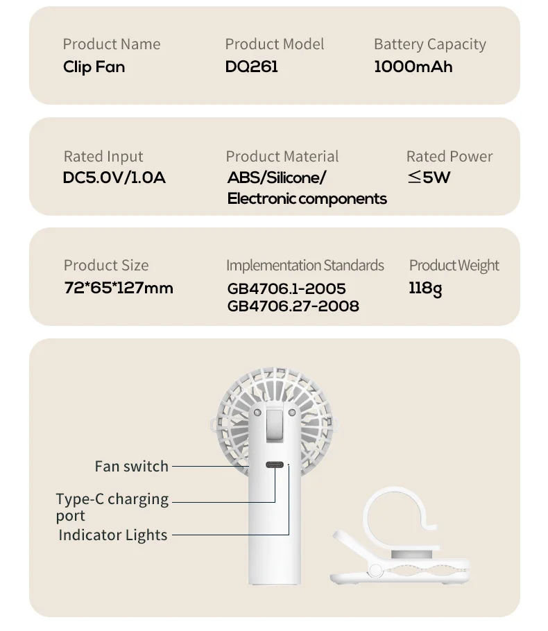 Beat the heat with the DQ261 Multifunctional Clip Fan, designed to keep you cool and comfortable during the hottest summer days. This compact yet powerful fan offers versatile usage options - clip it, stand it, or hold it in your hand. With a 1000mAh battery, three adjustable wind speeds, and a 90-degree adjustable wind direction, this fan is your perfect companion for outdoor adventures, office use, or relaxing at home.