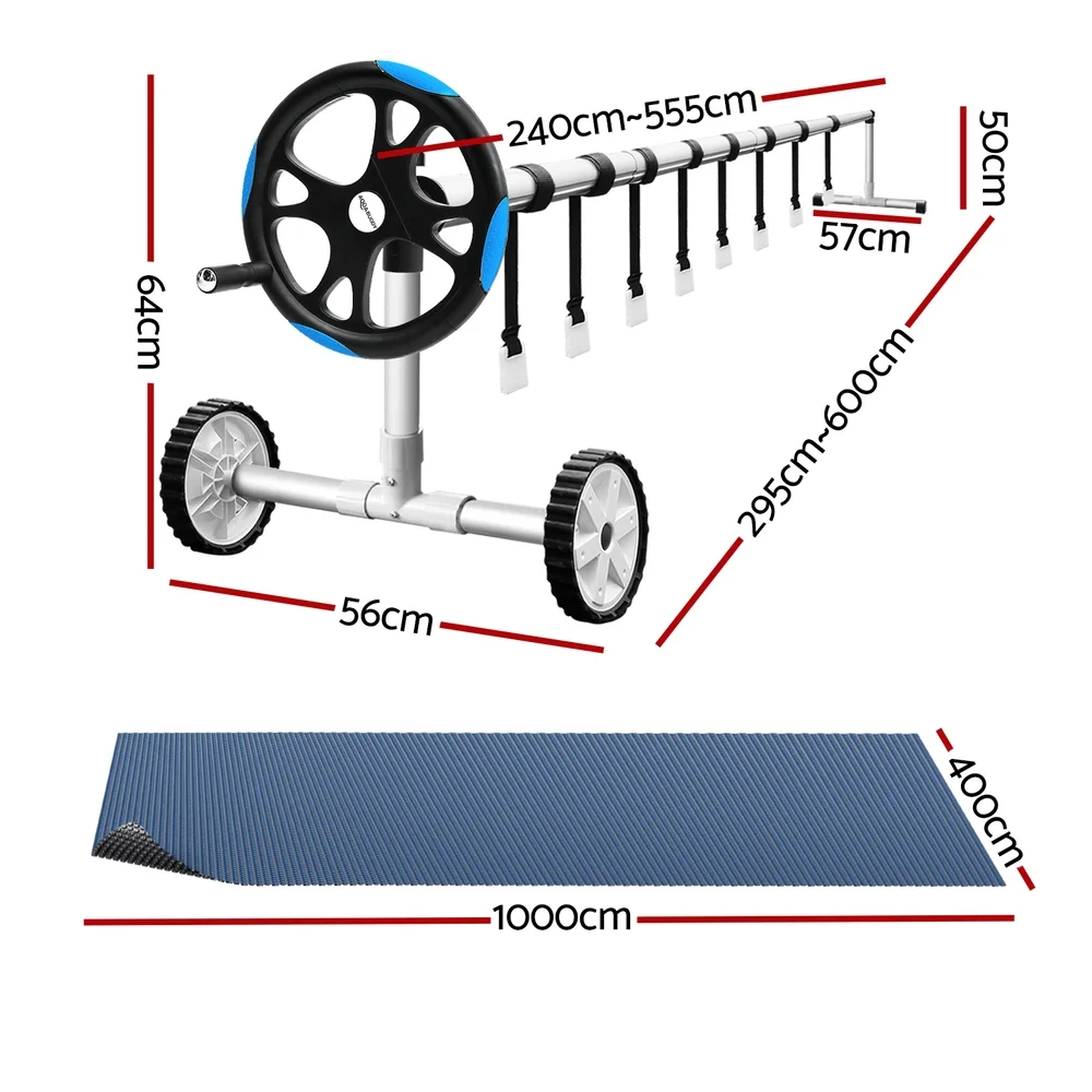 Keep your pool warm and free from debris with the AquaBuddy Aluminium Pool Roller and Pool Cover Set, designed for low maintenance. The adjustable aluminium pool roller is built for durability and fits pools with widths between 2.4m and 5.55m. Featuring anodised aluminium alloy telescopic poles, plastic wheels for easy portability, and a low-friction crank wheel, rolling and unrolling your pool cover is smooth and hassle-free.