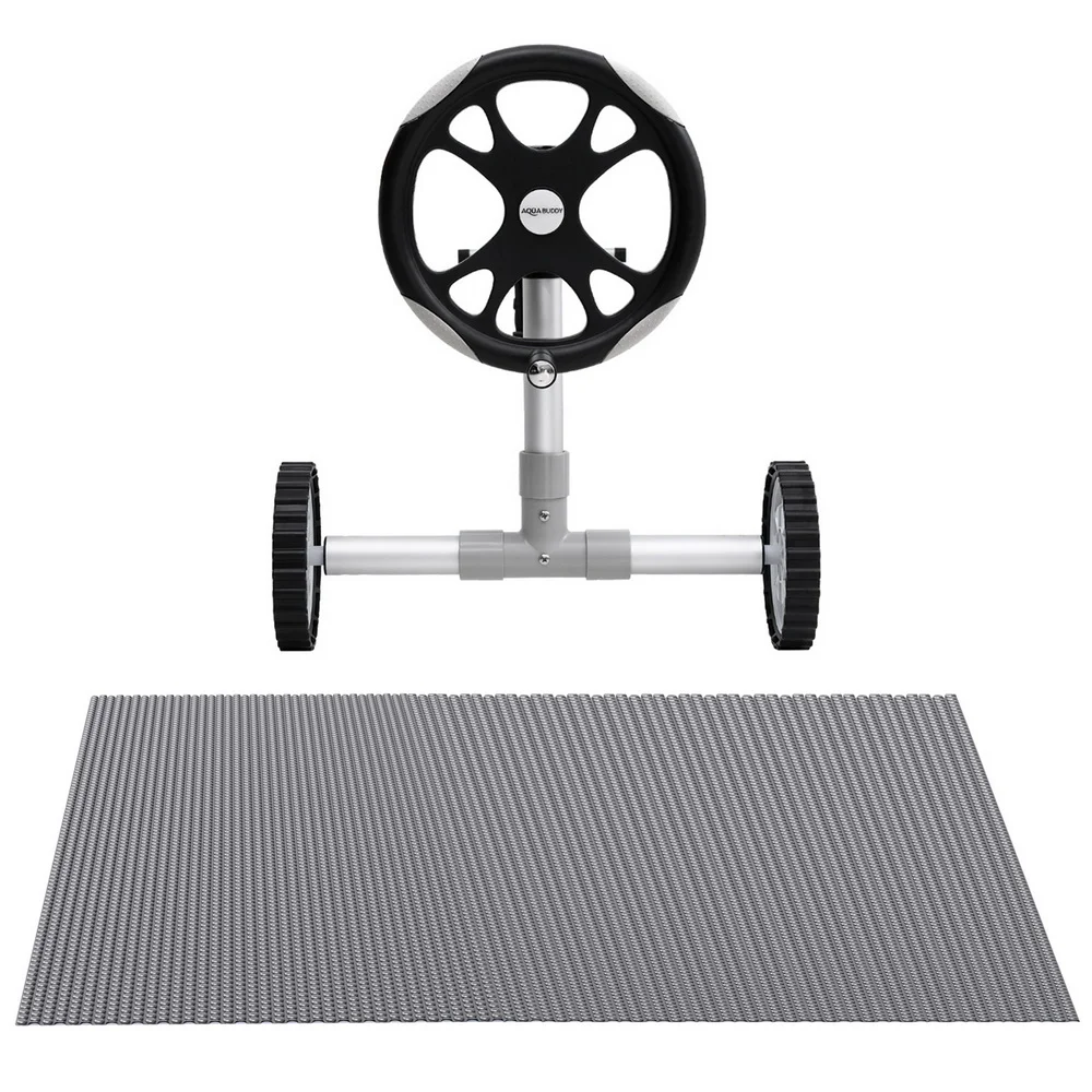 Keep your pool clean from debris and warm from the power of the sun with Aquabuddy's Aluminium Pool Roller and 11m x 6.2m Pool Cover. Made of sturdy aluminium construction with full adjustability, this pool roller is suitable for pool cover with a width between 3.1m-6.55m. It is equipped with premium anodized aluminium alloy telescopic poles, plastic wheels for maximum portability, and a low friction crank wheel to easily roll up your pool cover and get right in the water. The solar pool cover is made from premium low-density 600 micron polyethylene, which makes it extremely durable. The blue top and silver underside allow the sun's rays to penetrate the pool, increasing the temperature and significantly reducing water evaporation. Finally, the cover keeps the pool water clean all year round, reducing the time spent maintaining the water, pumps and filters. Get the best of natural resources and save money on chemicals and water; get yourself an Aquabuddy Pool Roller and Cover set today!