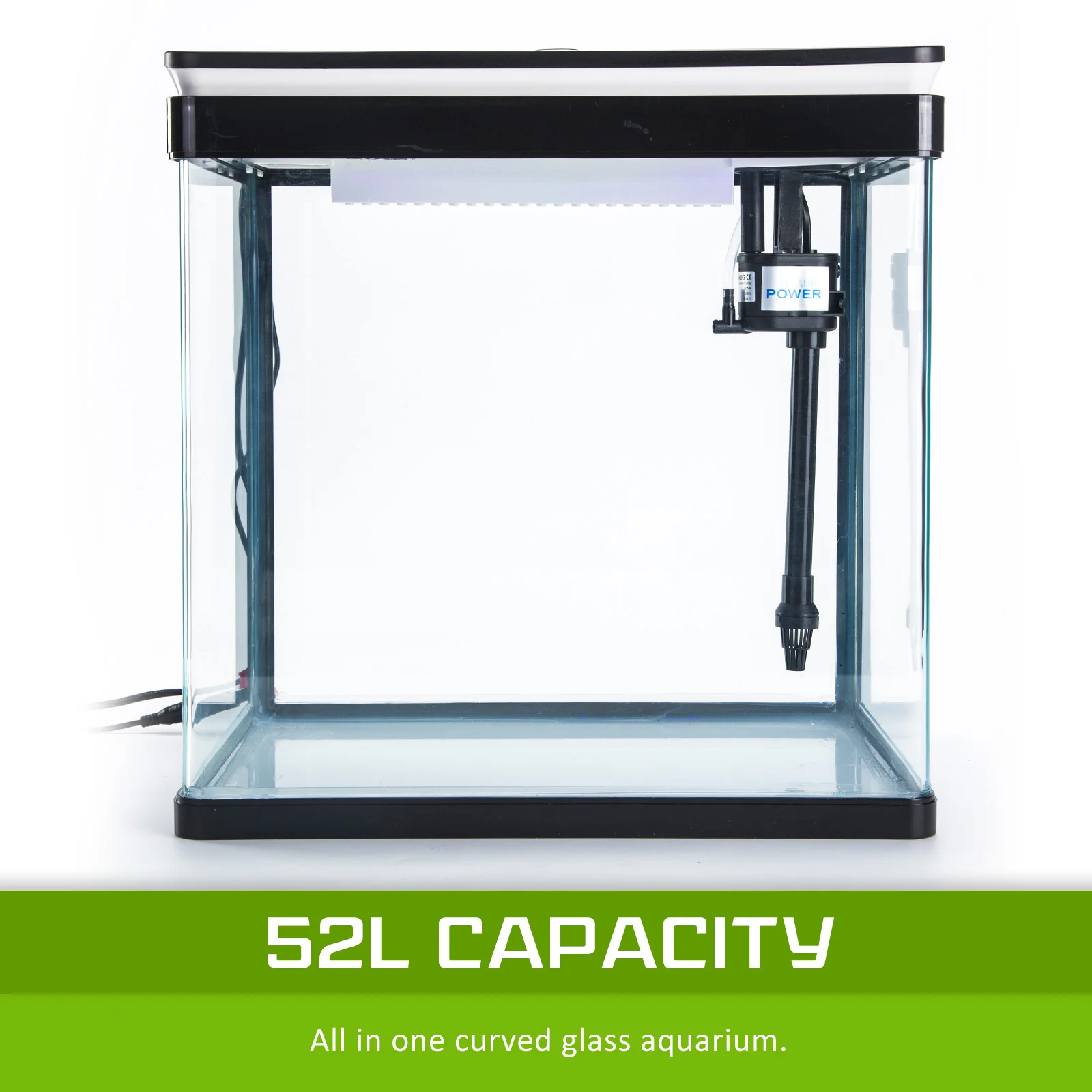 This Dynamic Power 52 litres all in one Curved Glass aquarium will make a beautiful feature in your home or work place. It comes complete with everything you need to enjoy the pleasure of designing and maintaining your very own aquarium.