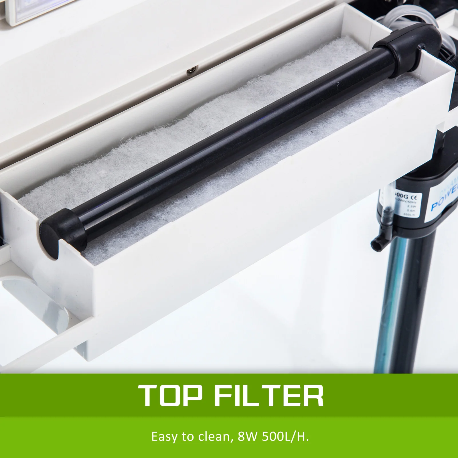 The tank is Curved Glass design for maximum display in any angle and it equipped with high-quality features that both you and your fish will love! The convenient hinged hood allows plenty of rooms for easy access and maintenance. The Low noise, high energy water pump with 8W 500L/hr flow, low energy 7W RGB LED lighting to provide UV for plants and a complete filtration system.