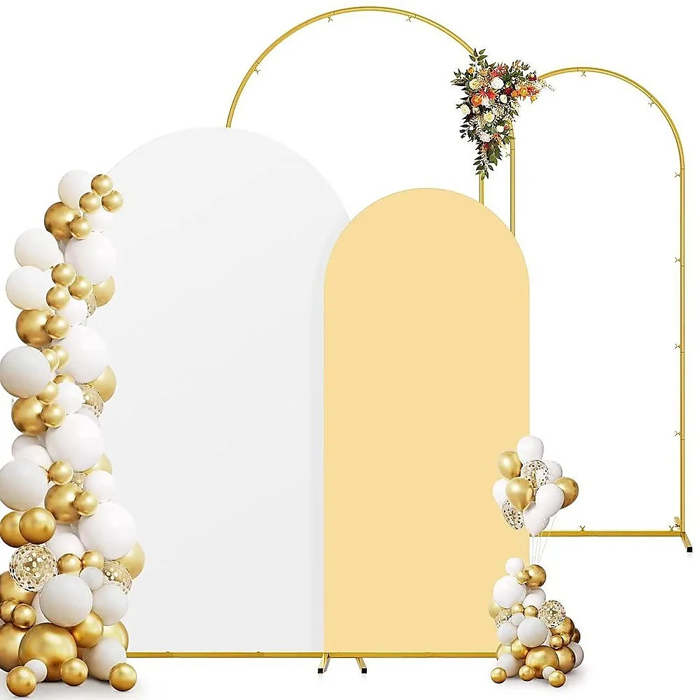 Create a stunning focal point for any celebration with this premium double arch backdrop stand and cover set. Designed for versatility and visual impact, this set includes two modern metal arch frames with matching chiara round-top covers, perfect for weddings, parties, and professional photo setups.