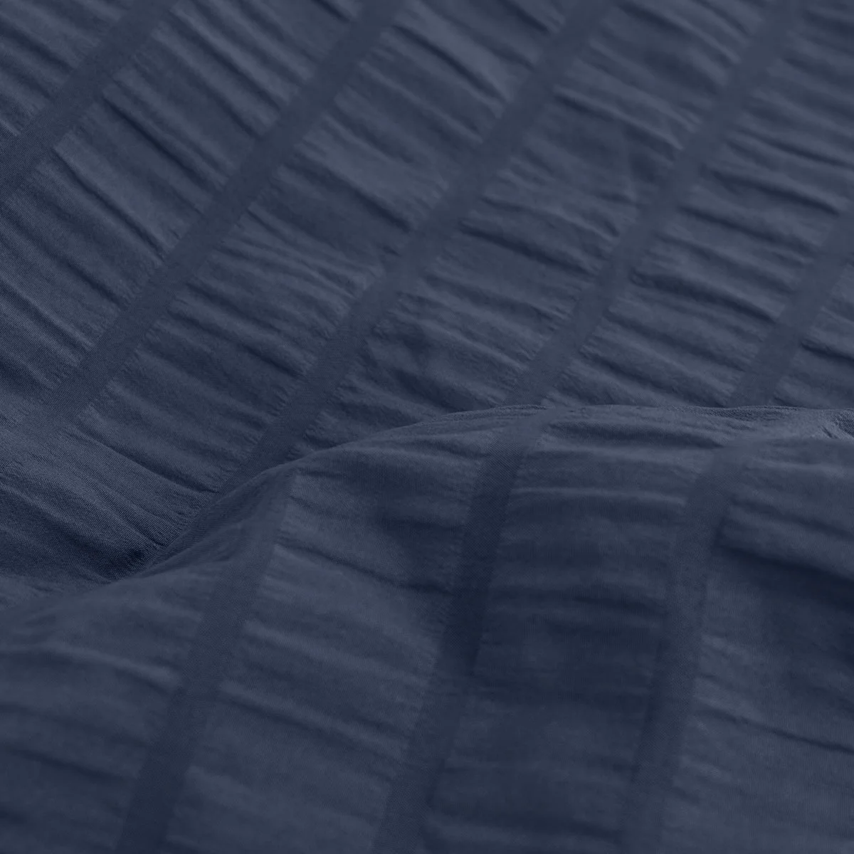 Elevate your bedroom with the Ardor Byron Navy Seersucker Quilt Cover Set, featuring rich tonal hues and a luxurious seersucker finish. It's textured design adds depth and elegance, while the soft fabric ensures a restful night's sleep. Showcasing a soft navy tone with a modern seersucker finish, this set adds a subtle yet eye-catching detail that enhances any space. Made from quality polyester material, it offers lasting comfort and durability, ensuring your bed feels as inviting as it looks every day.
