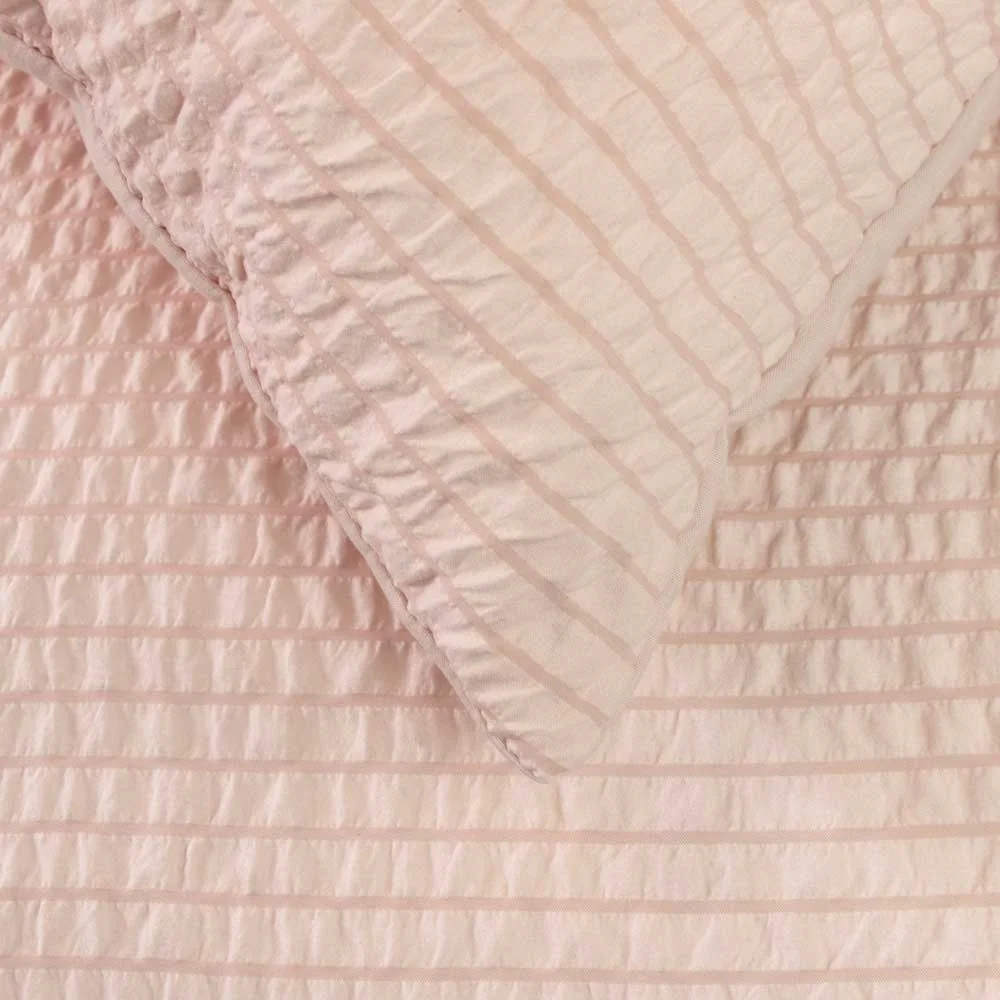 Gentle blush hues and small seersucker stripes create our elegant Ingrid Blush Seersucker Stripe Quilt Cover Set by Ardor. This subtle textured design will add small accents of details to your interior this season. It is made from quality and soft touch Polyester fabric with easy care properties.