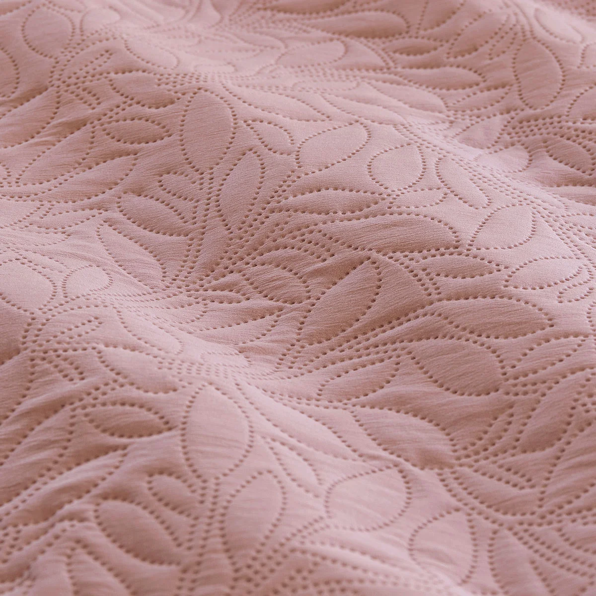 The Lottie Blush Pinsonic Embossed Quilt Cover Set by Ardor inspires a feminine style. The trailing foliage embossed pattern on soft fabric, is available in Blush or Blue Bell hues; Lottie is a great way to add finer details to your bedroom. It is made from quality and soft touch microfibre fabric for a relaxing and cosy night's sleep.