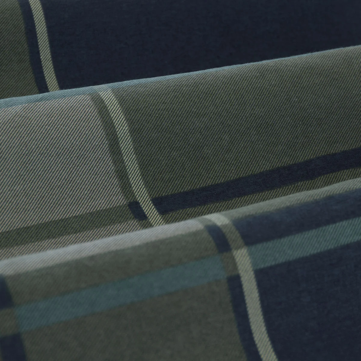Add a touch of charm and elevate your space with the Ardor Sommers Dark Khaki Cotton Flannelette Quilt Cover Set. This set showcases rich hues of dark khaki, navy, and green, and an oversided plaid design, adding a cozy yet stylish touch to any winer interior. This set brings a modern yet timeless look that instantly adds character to your space. Made from soft 100% Cotton fabric that feels soft against the skin while also being durable for everyday use. Easy to care for and effortlessly stylish, this quilt cover set is the perfect blend of comfort, practicality, and classic design.