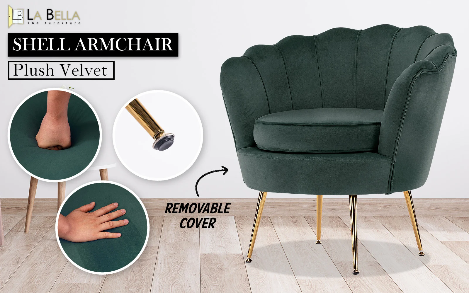 Sink into the La Bella Scalloped Shell Velvet Armchairs seat, keep you feeling snug and supported. With its elegant, distinctive shell curvaceous silhouette and silky tactile surface, add an extra luxurious touch to your home. If you are looking for retro, mid-century modern, and boho chic decor, this chair will be the right choice for you.