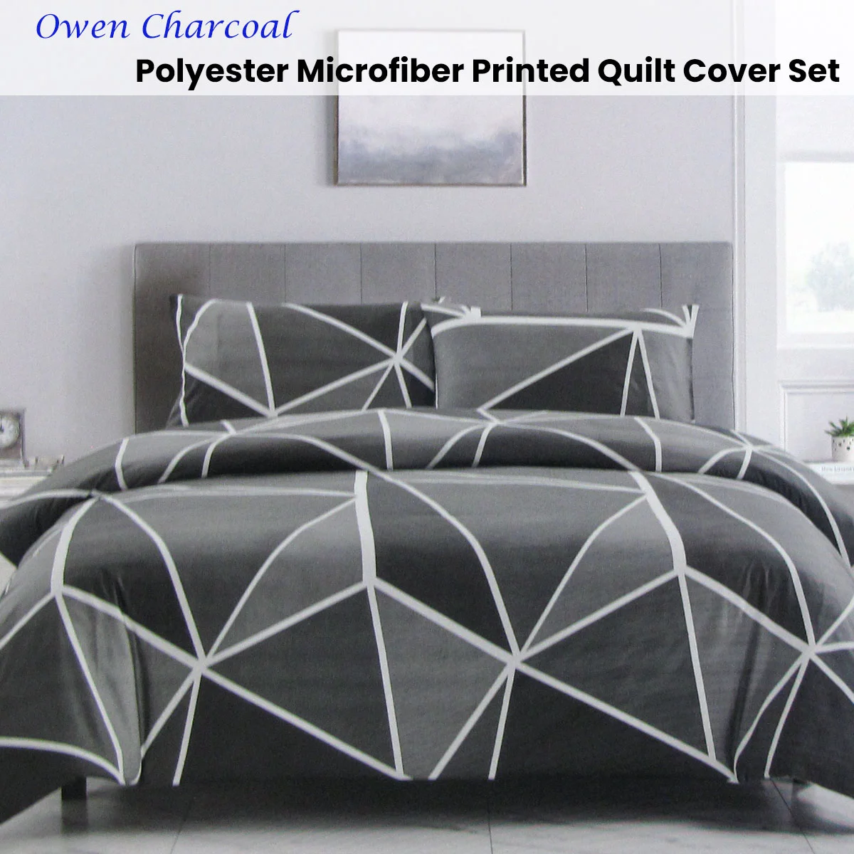 The Artex Owen Charcoal Quilt Cover Set Geometric Pattern Reversible Printed Microfiber Polyester features a striking and bold geometric design. The deep grey and charcoal tones with contrasting white lines gives the set a modern and edgy look. Made from soft polyester fabric, this set ensures long-lasting comfort and easy care, making it ideal for contemporary bedroom settings. Approx 90gsm polyester fabric, zipper closure.