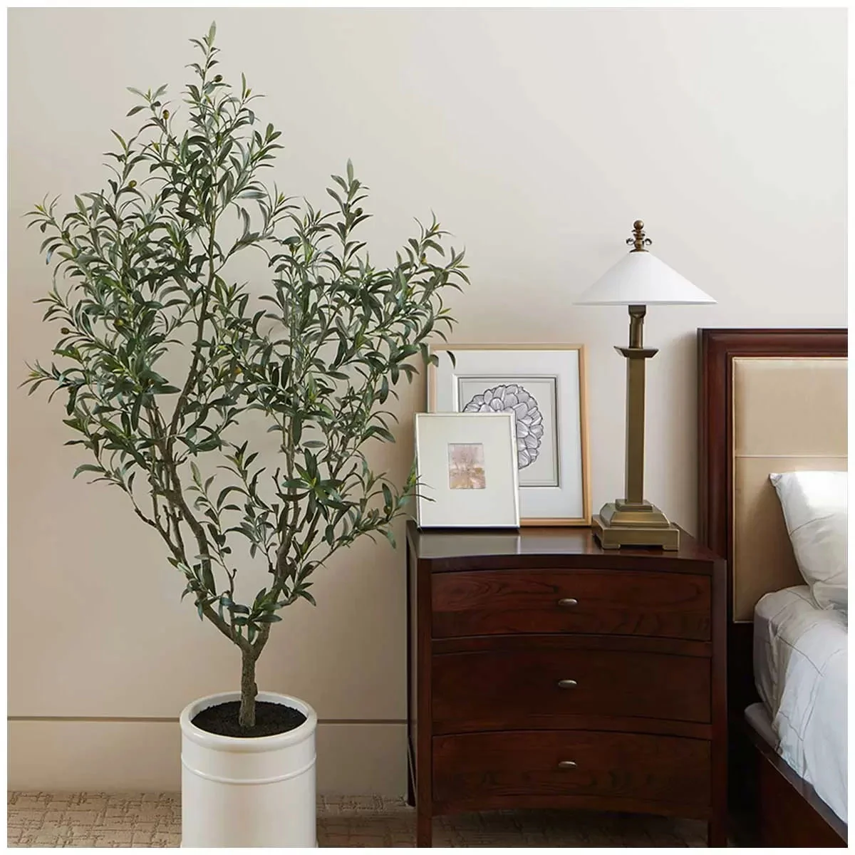 - Realistic Elegance: Featuring meticulously crafted leaves, branches, and a gnarled trunk, this artificial olive tree brings the serene beauty of the Mediterranean right to your living room, with a realism that rivals nature itself.