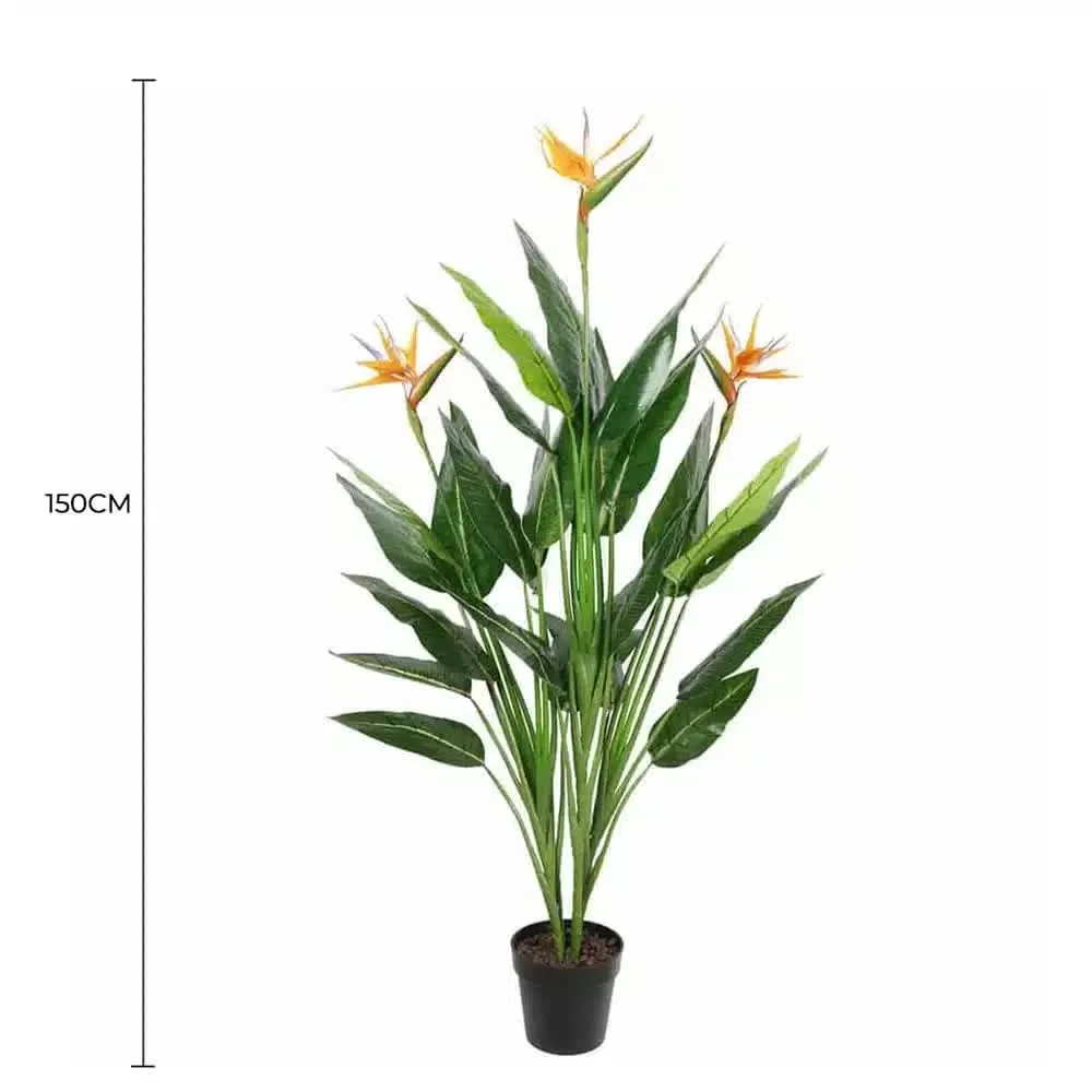 Bring the tropical sunshine indoors with this lush Bird of Paradise plant. Standing a full 58 high, this beautiful specimen sports large, full leaves with distinct, colorful blooms that perfectly capture the delicate nature of this plant. This is also a real touch offering, which means it feels as real as it looks (without ever needing water!)