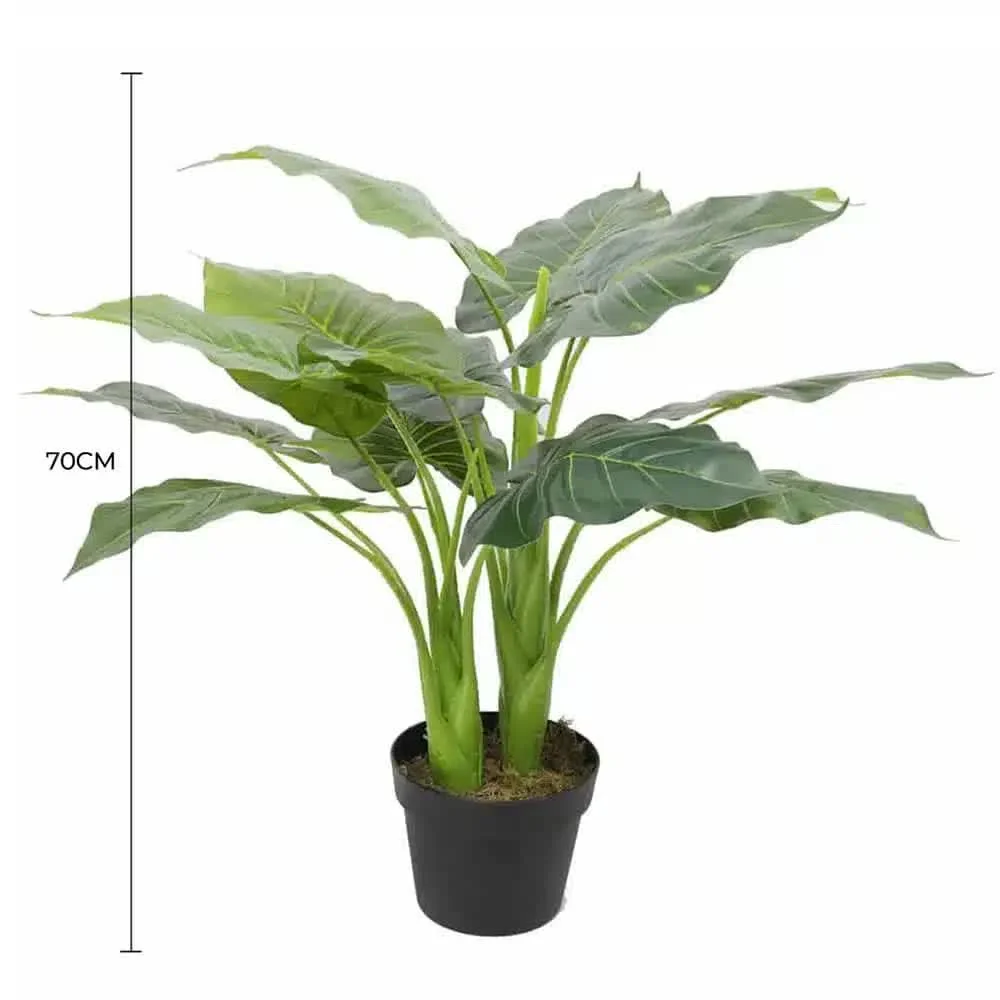 Small potted artificial taro plant (faux elephant ear plant)