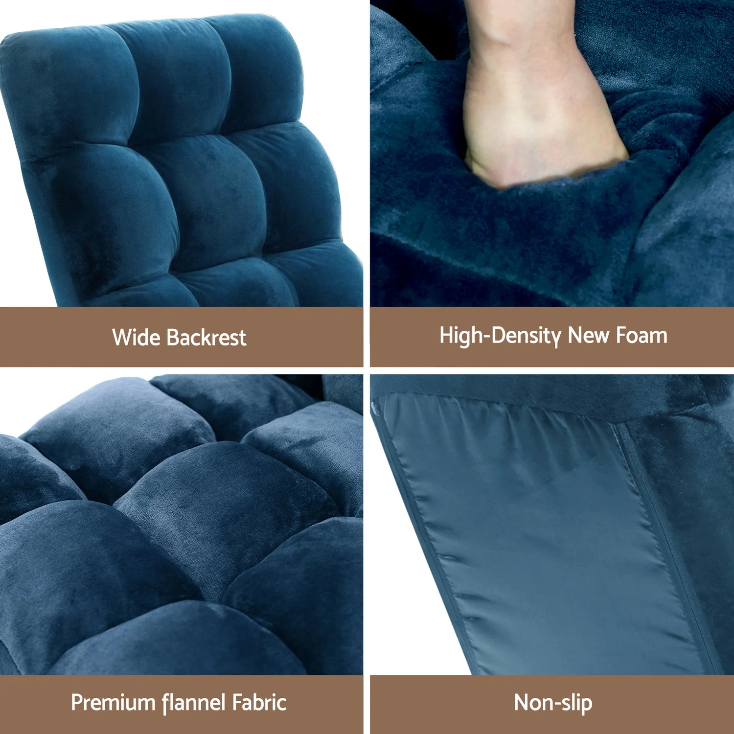 Designed to be fully adjustable, our Lounge Sofa Chair is perfectly angled for reading, watching TV or surfing on your device, or have it fully flat for taking short naps in between. Fact is, there are 14 available positions for you to set the sofa chair up, so that you can enjoy your activity in the most precise and supportive position. The set position holds well too with its sturdy metal frame that can take weights of up to 150kg. You also appreciate the generously padded sofa chair with its premium soft-to-the-max flannel fabric cover and high resilience foam filling. All the right elements for plush and cushy comfort. Not least, the sofa chair is foldable for easy storage until required.