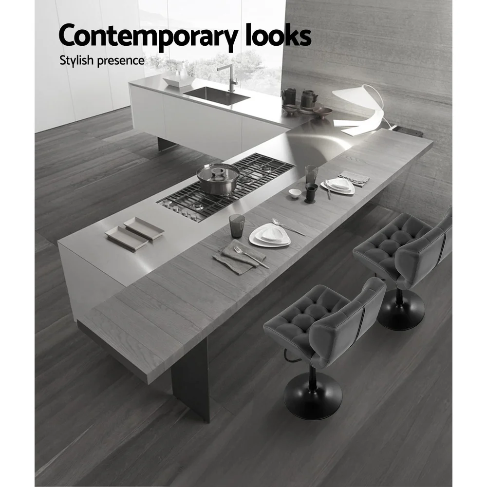 SERENITà Golden Swivel Upholstered Velvet Adjustable Height Counter Stool with Metal Frame Black (Set of 2)