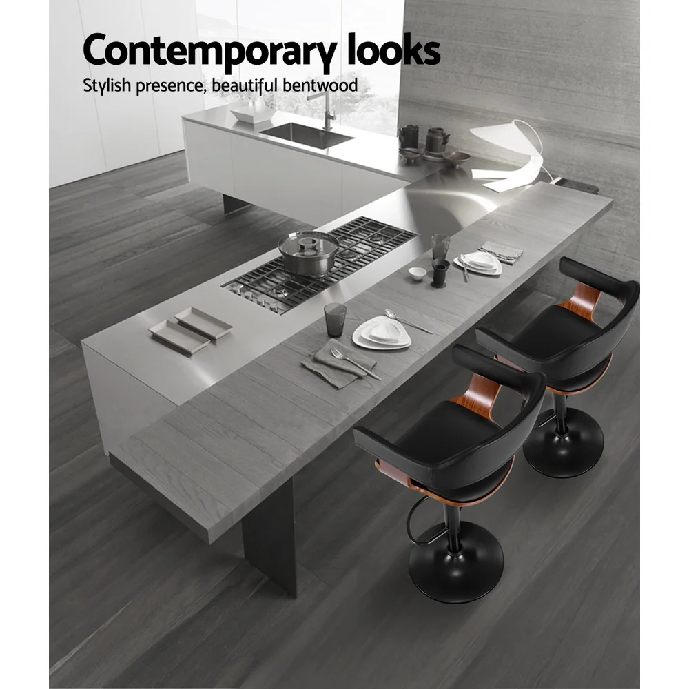 Artiss 2x Bar Stools Kitchen Dining Chairs Counter PU Leather Wooden Ada Brown